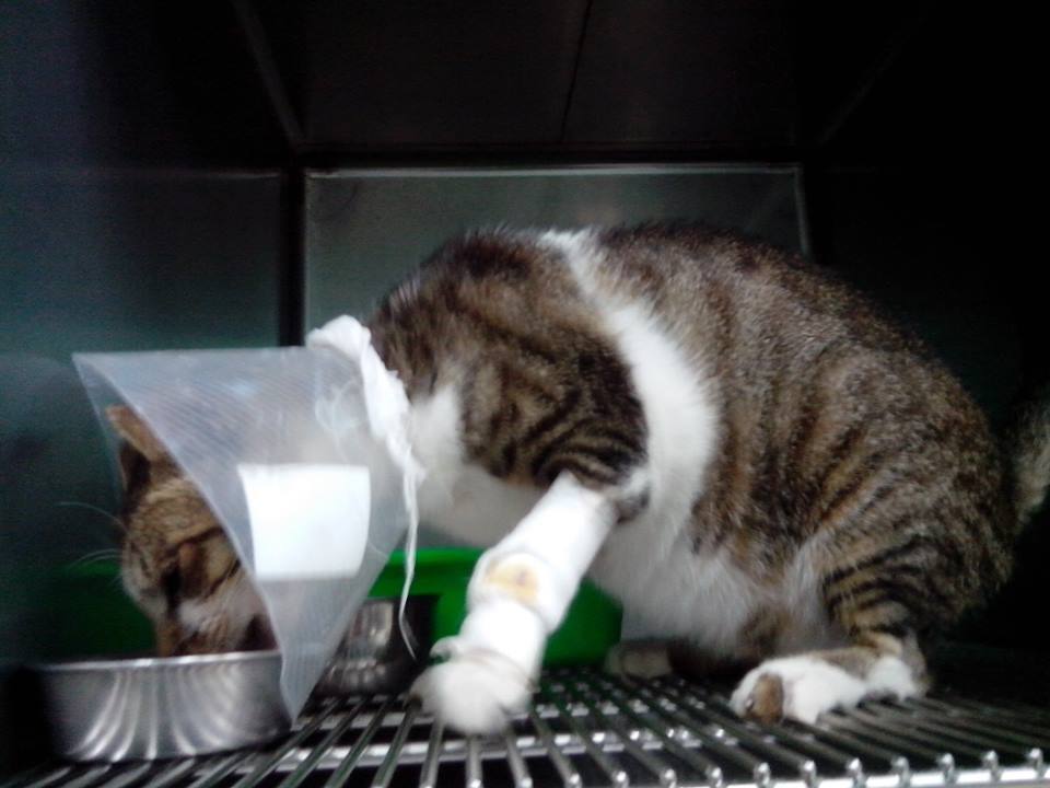 主題: 左前腳受傷之公貓 , 抓抓 申請者姓名: 程修芳 花色: 申請日期: 2013-06-08 00:21:43 申請者部落格: 申請者臉書網址: 所在縣市/合作醫院: 台南市/啄木鳥動物醫院 治療費用: 5700元 需求人數: 6人 已結案 (2013-09-03 16:22:30) 報名人員: Toto Momo、Amanda(已付款)、周小蕾(已付款)、Gina(已付款)、Felicity Chen(已付款)、Starry Yang(已付款)、catnana(已付款)、 候補人員: 動物病情說明: 今日發現在自家門口的已結紮的公貓,左前腳的關節越來越腫, 有用手摸, 發現有軟軟的東西, 走路一跛一跛的. 所以已先行抓到, 5/4 準備送台南市啄木鳥醫院, 特此通報, 動物近況說明: 抓抓的左前腳經治療&清創已痊癒,後來又上呼吸治染, 經噴霧及藥物配合, 已於 6月初出院, 已原地放回我家門口, 到了傍晚都會出現來吃飯~
