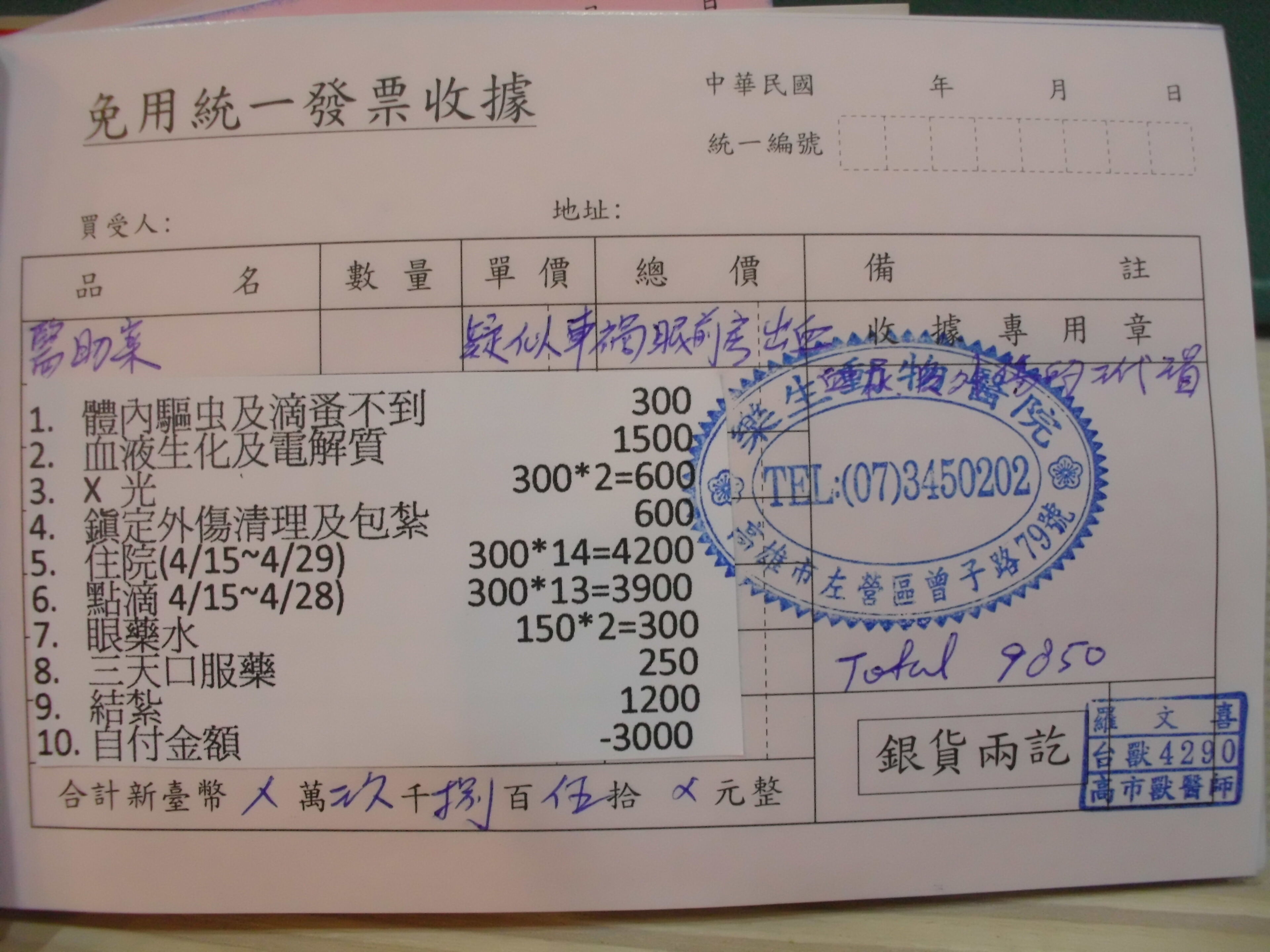 費用部分自行負擔三千元,醫療費用還請各位幫忙。謝謝!