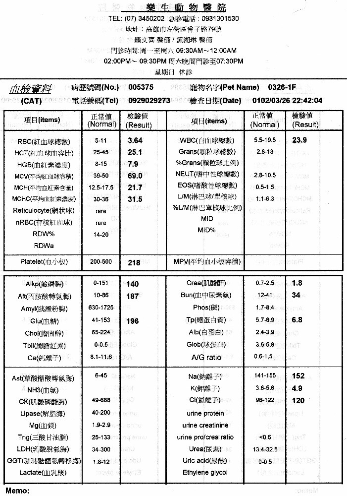主題: 疑似車禍尾薦椎受傷且後驅癱瘓的貓 申請者姓名: 楊竣欽 花色: 申請日期: 2013-05-10 21:08:51 申請者部落格: 申請者臉書網址: 所在縣市/合作醫院: 高雄市/樂生動物醫院 治療費用: 17400元 需求人數: 19人 已結案 (2013-08-06 14:01:01) 報名人員: 邱小咪 x2(已付款)、Cindy Sung、Cindy Sung、philip x2(已付款)、alchow3、Mei-Yi Wu(已付款)、黑貓姐(已付款)、Anthony Weng(已付款)、euca(已付款)、Chen Ping(已付款)、胡嘟嘟(已付款)、chiawei x2(已付款)、Freessia Lin(已付款)、小七(已付款)、Tiffany Shen(已付款)、www.petsAholic.com - Ms. Richardson、Vicky Chang Shyr(已付款)、00(已付款)、呂嘎嘰(已付款)、KIKI(已付款)、 候補人員: 動物病情說明: 3/27早上7點多.因上班的途中.發現到一家保養場前的車子底下.躲著一隻白色小貓.於是就拿了早點分了一些要給小貓吃.正當要靠近時.發覺到小貓有點怪怪的.她好像不怕生..但又不太想讓我靠近的感覺.然後就慢慢的移動身體...我才發現到小貓的後腳根本沒有動..而且小貓動作的感覺好像很吃力.拖著走.可是小貓周圍都沒發現到血跡.之後.拍了照片.我就丟著食物在他旁邊..先行離開去上班.到公司在上網求助貴協會救援這隻小貓...然後有志工跟我連絡前來幫忙救援到此貓送到醫院檢查與治療.