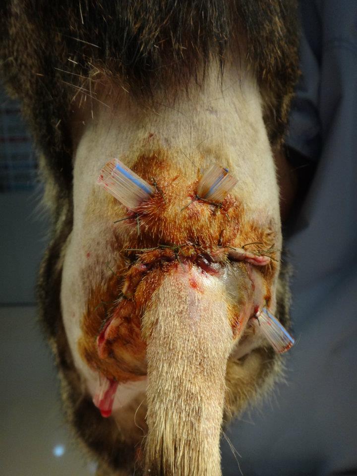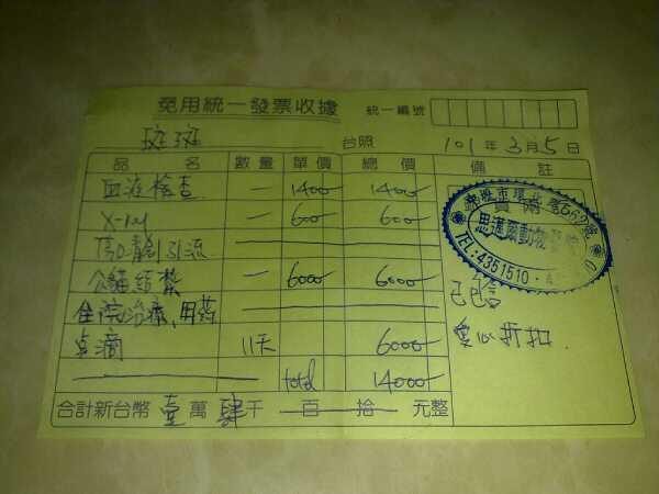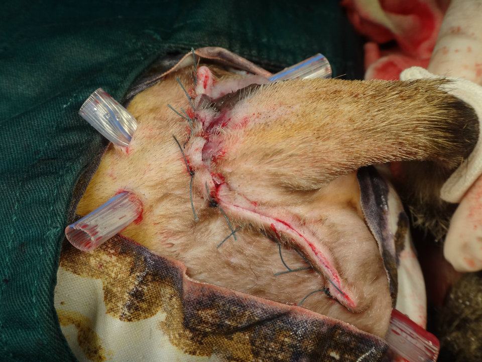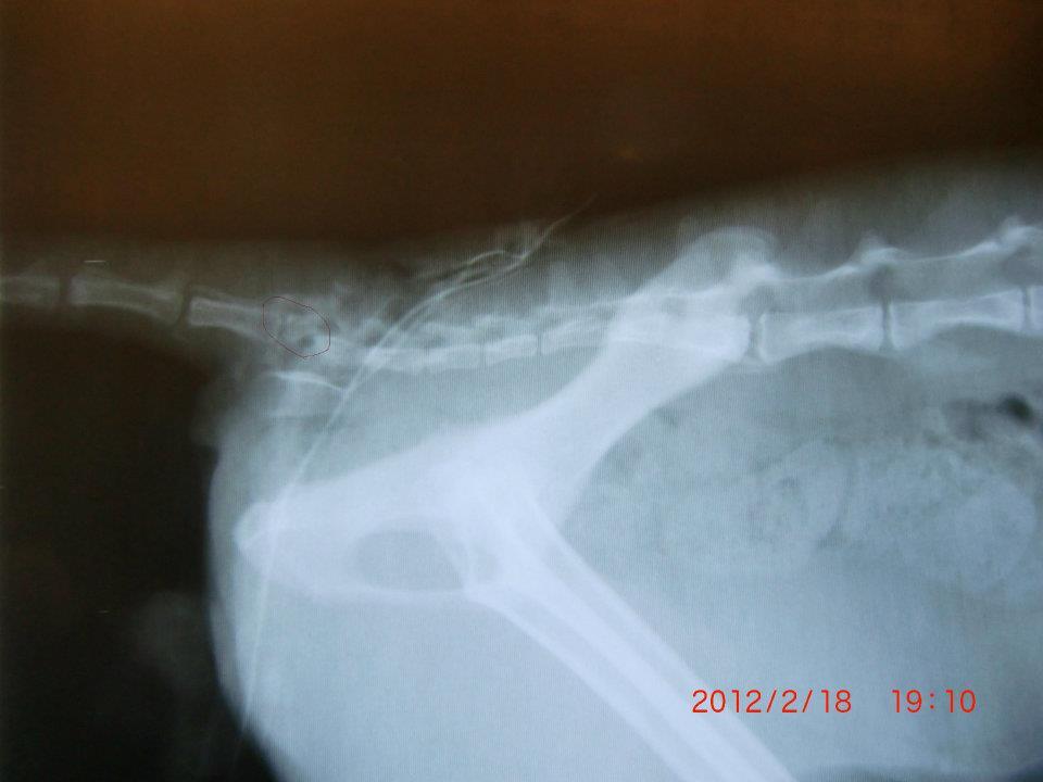 第五結尾椎受傷嚴重.其中致命的傷來自一個看似受傷的小洞,卻已經咬到尾椎!傷口內全是膿.將預計一周清創,結紮等醫療