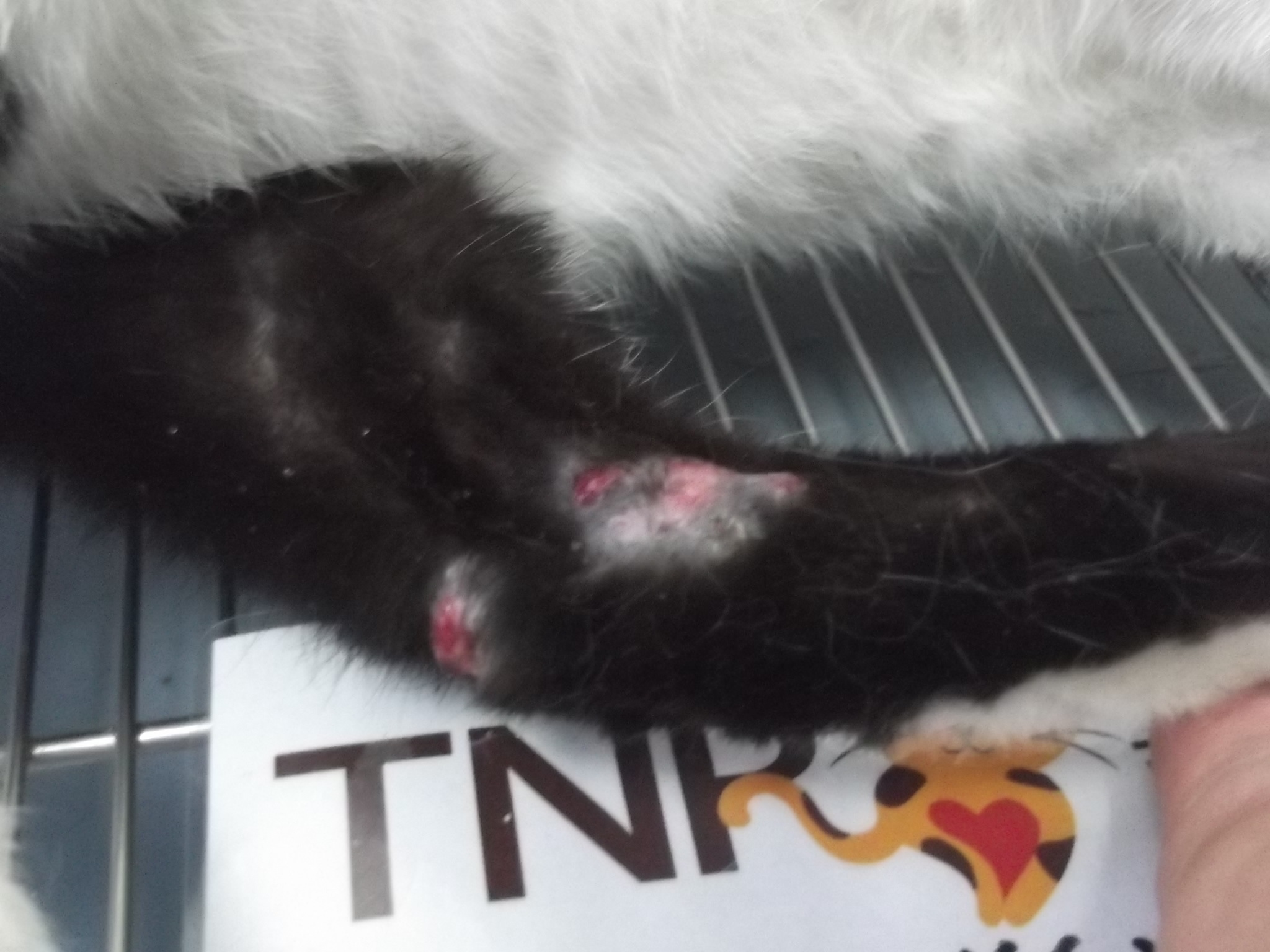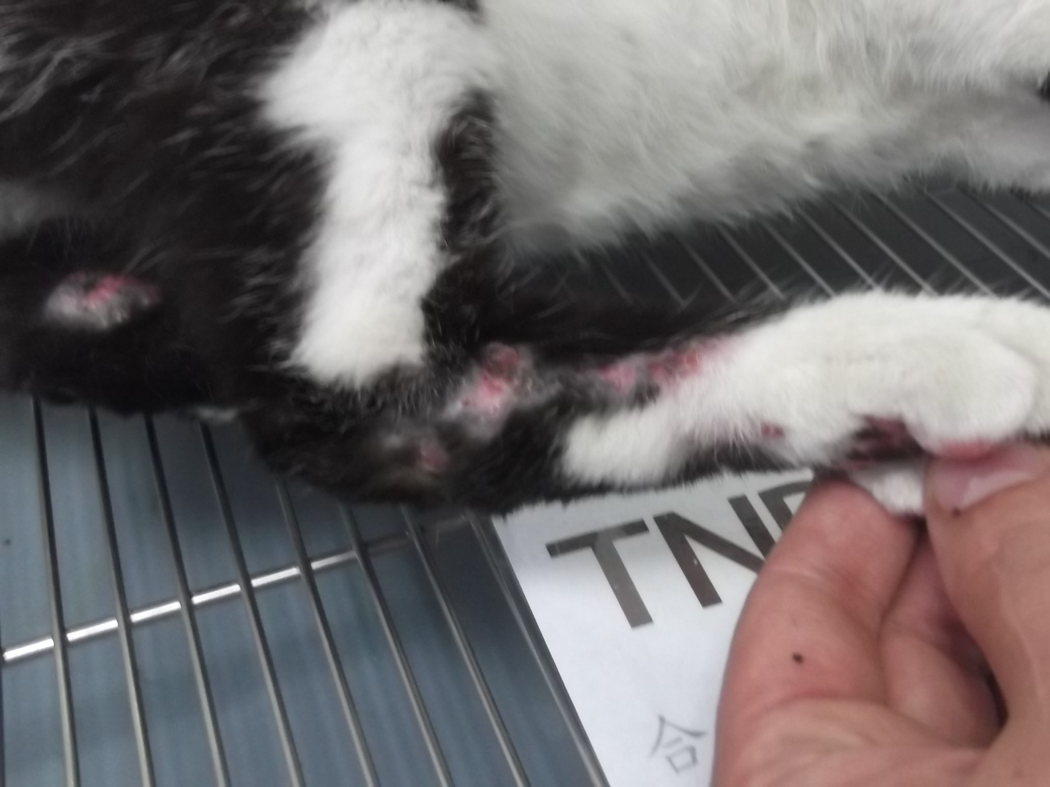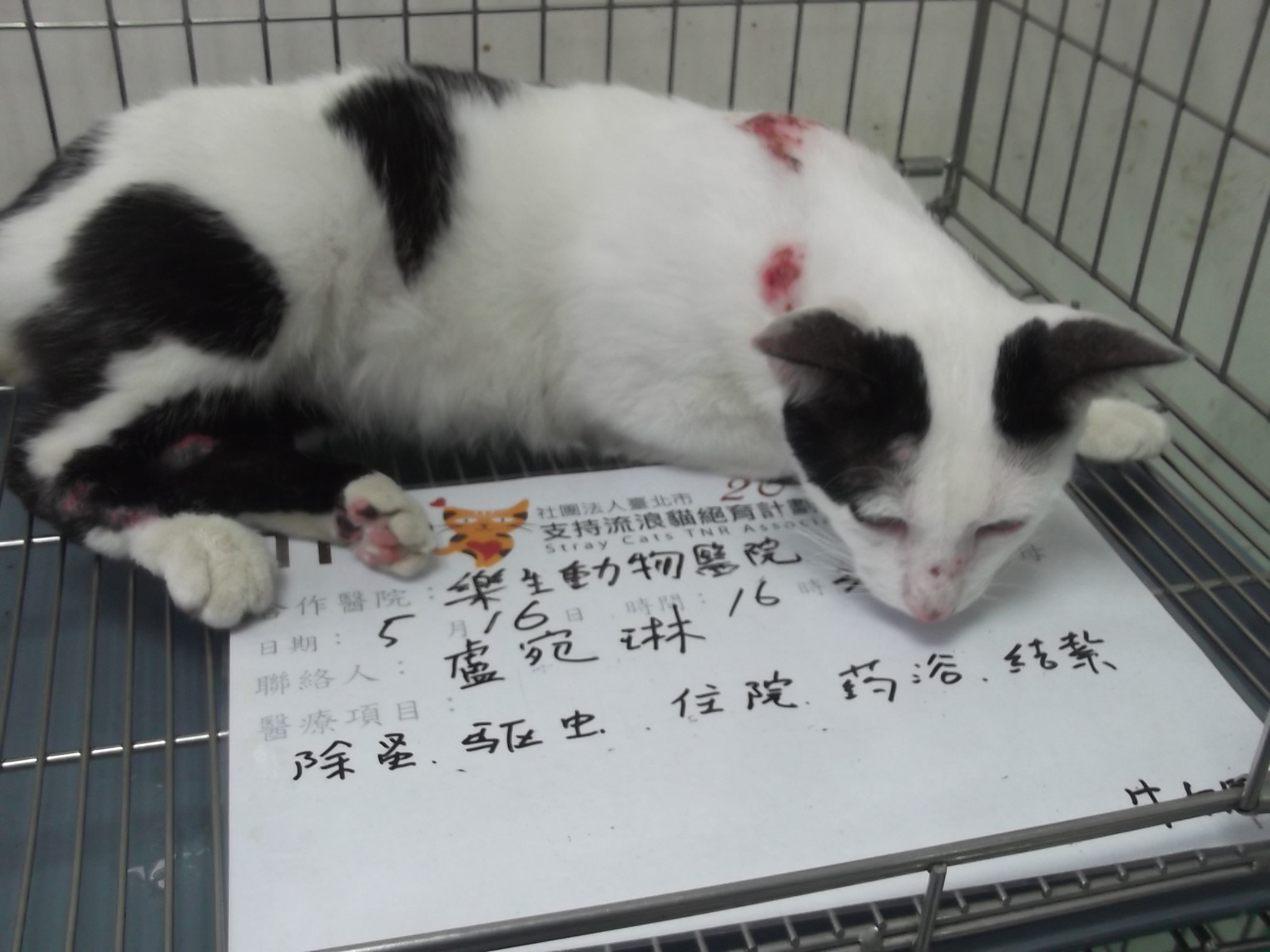 主題: 皮膚跳蚤性過敏脫毛流血的貓 申請者姓名: 盧宛琳 花色: 申請日期: 2013-06-14 00:03:01 申請者部落格: 申請者臉書網址: 所在縣市/合作醫院: 高雄市/樂生動物醫院 治療費用: 6700元 需求人數: 15人 已結案 (2013-09-03 16:22:00) 報名人員: Liyun Chang(已付款)、煎塔媽(已付款)、Forest(已付款)、leisuredyang(已付款)、Liz、sbjenny(已付款)、Lifflefish Yu(已付款)、霿霜雪(已付款)、Shumi Tsai(已付款)、李笠德 x4(已付款)、Shirley Tsai x2(已付款)、QQ、Rory(已付款)、 候補人員: 動物病情說明: 這隻貓咪在前幾個禮拜出現在我家附近乞討,由於皮膚一直流血又乾了結痂不斷輪迴,非常捨不得,因為很親人徒手就能抓到,所以就把牠抓起來送醫