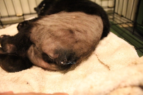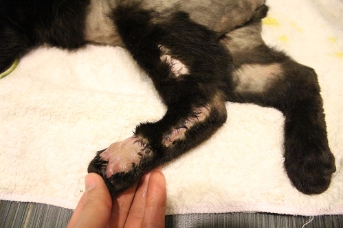 到了晚上前後肢脫毛的狀況更加嚴重。