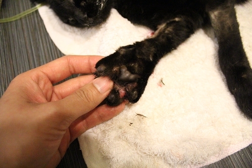 觸摸後腳,腫脹有疼痛感,脫水,