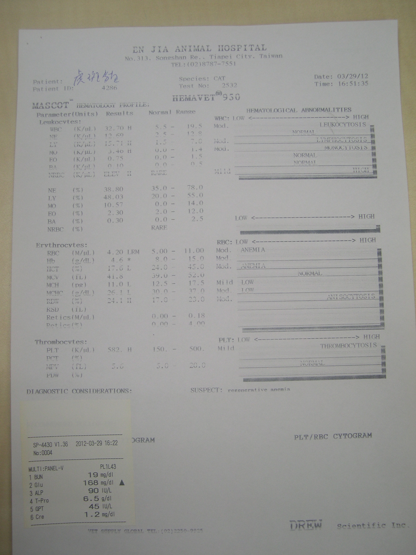 所以只和恩加動物醫院拿了點滴與藥自行回去照顧