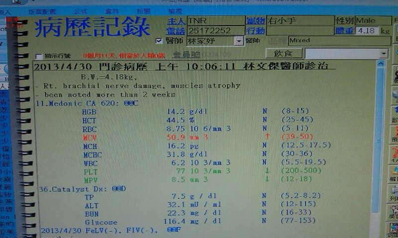 主題: 右手反折拖行截肢的右小手 申請者姓名: 臺北市支持流浪貓絕育計劃協會 花色: 申請日期: 2013-06-03 11:41:33 申請者部落格: 申請者臉書網址: 所在縣市/合作醫院: 台北市/其他院所醫助專案(醫院請先MAIL溝通) 治療費用: 14100元 需求人數: 30人 已結案 (2013-06-27 13:04:20) 報名人員: 叮噹貓(已付款)、紀昇志(已付款)、Erik Huang(已付款)、Bow Huang x4(已付款)、久久布布(已付款)、aky(已付款)、Szuhan Liu(已付款)、Kiki Liang(已付款)、林微利(已付款)、Ea Ting Wu(已付款)、Sheepy(已付款)、Yiting Chen(已付款)、Hope Liao(已付款)、Yuki Liu(已付款)、莊孝國(已付款)、natsui、natsui(已付款)、Gina Chen-hui Yu x2(已付款)、zatti(已付款)、Berwei Huang(已付款)、Claire Chao(已付款)、iMADOKA(已付款)、悅萱(已付款)、Richard Hsu x3(已付款)、Pan(已付款)、 候補人員: Fly Satake、 動物病情說明: 土城區虎斑貓咪因為爬椅墊被附近住戶毆打,導致前肢反折拖行,送醫檢查照X光發現,骨頭部分並無異常,血檢正常已進行結紮剪耳,醫師研判手部似激烈拉扯導致頸神經受損,從手臂到手掌無神經反應,本來留下手臂是為了平衡之用,但發現貓咪在跳躍的時候,沒有神經反應的手會勾到,拉傷劃破,為此進行第二次評估,醫師認為手已經變成累贅,沒有神經反應、肌肉萎縮、失去痛覺,有可能受傷而不自知導致危險,評估需要進行截肢手術。右小手每天都一直舔自己的小右手,然後發呆,他也覺得很奇怪,為什麼都沒有感覺...他會母雞蹲把小右手壓在身體底下,跳躍的時候都會阿阿叫好像很生氣為什麼手都不聽話,看了令人難過,截肢是為了保護右小手,為了日後生活品質,也只能忍痛進行手術。