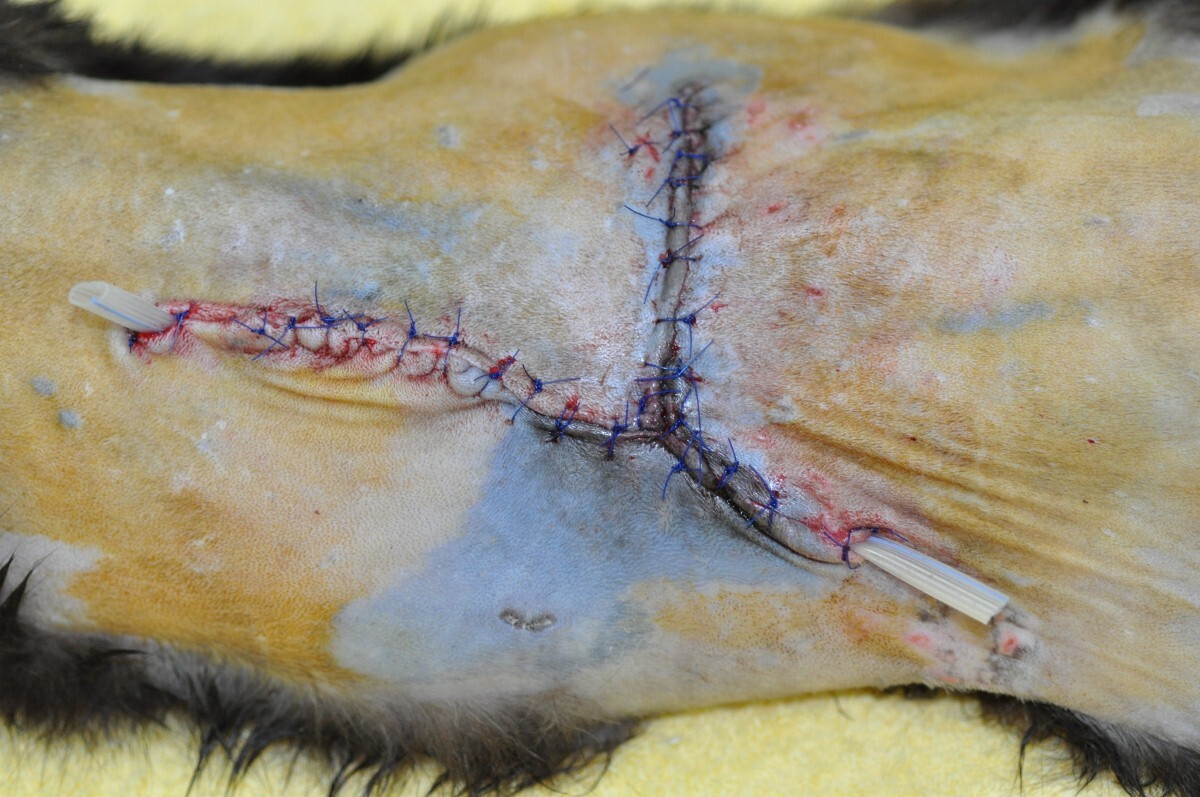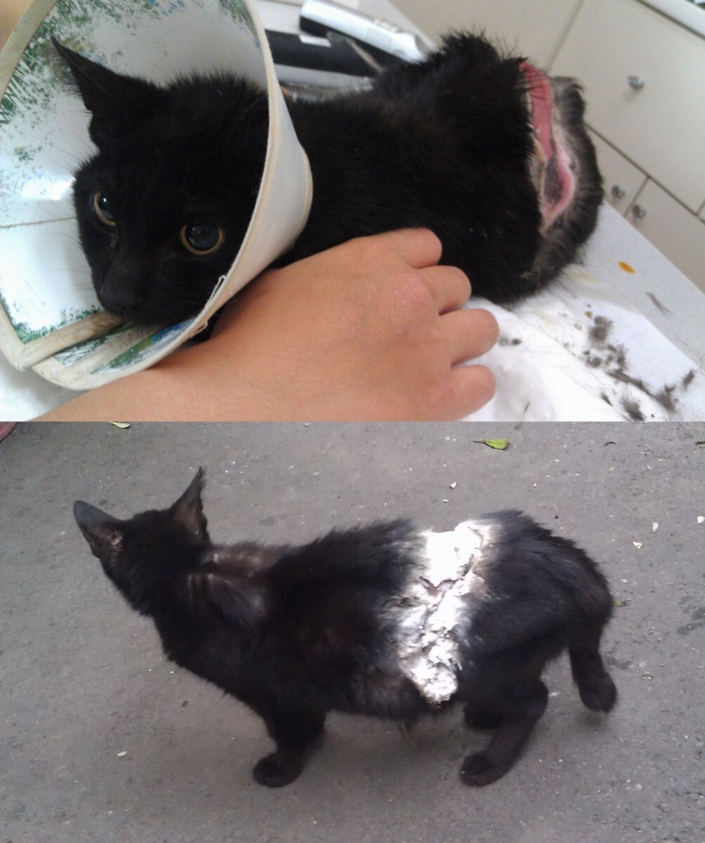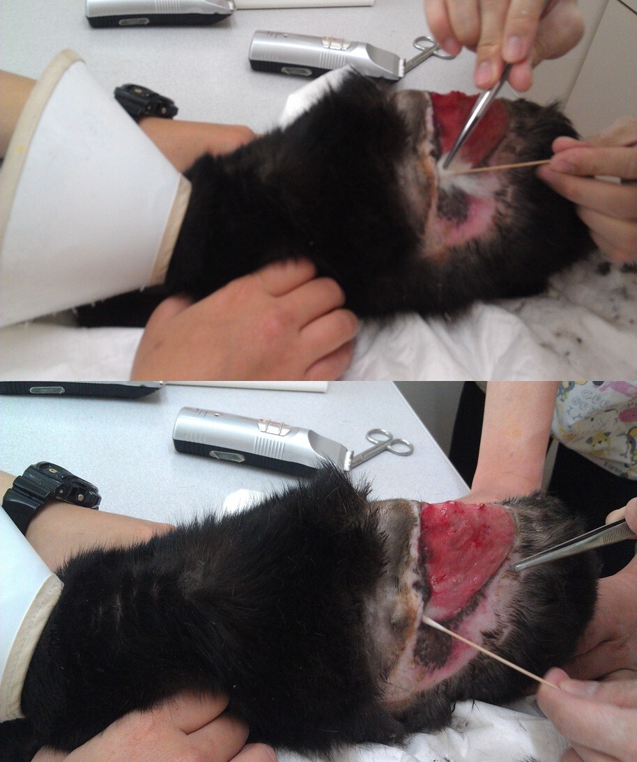 主題: 高雄中崙二路被割一層皮肉的黑母貓 第三階段 申請者姓名: 劉雅雲 花色: 申請日期: 2013-08-01 01:36:11 申請者部落格: 申請者臉書網址: 所在縣市/合作醫院: 台北市/其他院所醫助專案(醫院請先MAIL溝通) 治療費用: 55080元 需求人數: 58人 已結案 (2013-09-03 16:21:39) 報名人員: 版畫(已付款)、Kiwee Chou(已付款)、zoiku1216(已付款)、Vanna Tai(已付款)、曾美蓮(已付款)、yymeow(已付款)、愛麗絲(已付款)、Schuhuen Yi-chin Huang x3(已付款)、福祿壽(已付款)、許雯綺(已付款)、WeiLin Chen(已付款)、張傑凱(已付款)、Po-Lin Chen(已付款)、April Tsung(已付款)、April Tsung、露曉比(已付款)、Richard Hsu x3(已付款)、Wen Hsu(已付款)、謝耶露(已付款)、珊珊(已付款)、Ginelle Qiu(已付款)、Puffy(已付款)、Bayca1209(已付款)、Vivid(已付款)、Ariel Earmol(已付款)、Vivian Liu(已付款)、小昊(已付款)、Ben(已付款)、Patrick Liu(已付款)、謝沛豈(已付款)、crystal(已付款)、張馨勻(已付款)、crystal、Forest(已付款)、vivian(已付款)、李坤財(已付款)、心上人(已付款)、吳垂螢(已付款)、簡伯誠 x2(已付款)、Ke Ke、不不熊(已付款)、Donna tien x2(已付款)、Allen Ho(已付款)、大聲說 x2(已付款)、Emilia Chen(已付款)、Shan Chou x2(已付款)、Yi-Jun Huang(已付款)、Wang Cing、鄭曉鈴(已付款)、Gisele Chung(已付款)、陳小茜(已付款)、林肥文(已付款)、Jessica Lin(已付款)、Jessica Lin、Satsuki Igarashi(已付款)、 候補人員: December、Fan-Yi Hsu Hsu、Cho Wa、 動物病情說明: 這在高雄中崙二路之前TNR要離開時看到有一個小檳榔攤那邊有很多浪狗還有一隻黑黑的東西很像貓, 但皮膚上有一層白白的東西, 我停下車去問並仔細一看, 貓咪身上一層皮肉不見了, 傷口很嚴重, 所以將貓送到協會合作醫院後,醫院馬上幫貓咪做清創, 整層都是壞掉的皮削所以都先清除, 經過一番清創貓咪留在醫院做治療並每天換藥, 貓咪原本恢復的很好傷口也變小, 醫生幫貓咪做 過一次把皮拉近的小手術, 原本可以試著把傷口逢合, 但縫合前發現滲出物又變多, 所以又重新清創與做了一次細菌培養, 因為傷口還是都有細菌無法將傷口縫合, 後來轉院到台北 重症醫助合作的醫院(5/25-7/21). 經過一番努力, 傷口終於復原並順利縫合了, 謝謝大家的幫助捐款. 詳細明細如附上的照片第八張喔.