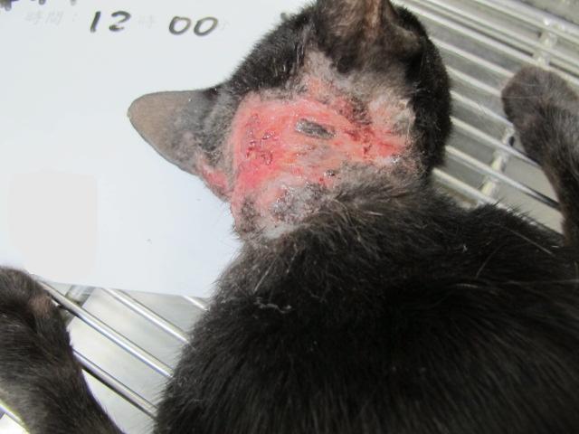 頸部背側有大範圍脫毛、化膿