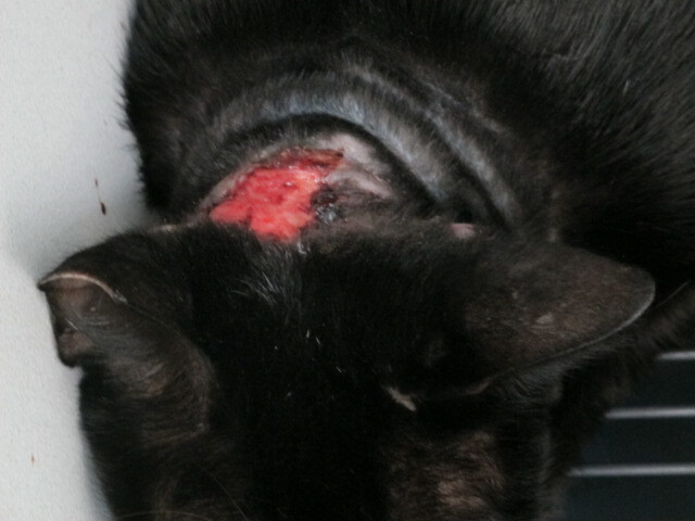 赫然看到脖子嚴重外傷的黑貓