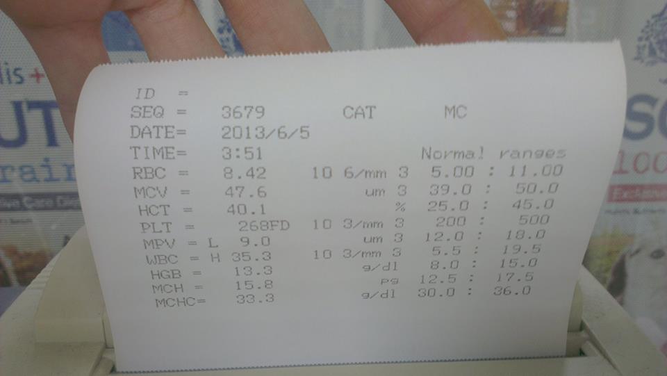 血液檢查白血3.5萬 暫時超標一倍
