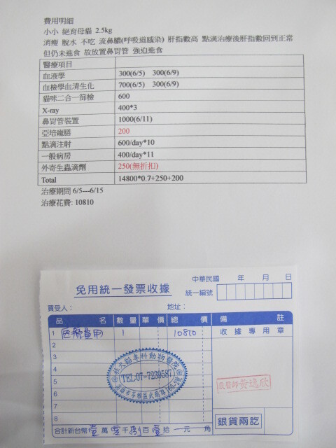送到醫院的小小有消瘦、脫水、不吃、流鼻膿(呼吸道感染),