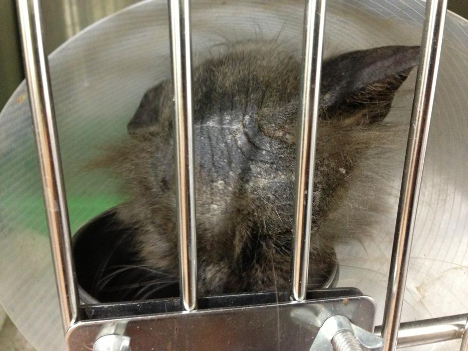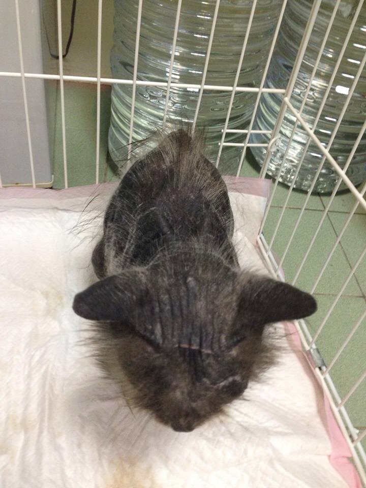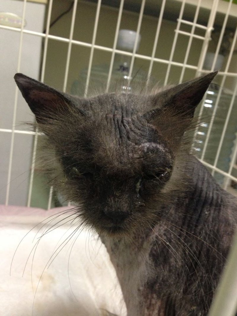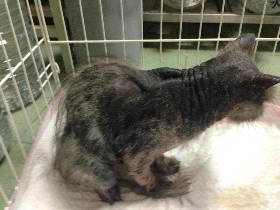 全身毛掉很多 只剩下不多的毛 身體皮膚也多處潰爛 雙眼差不多潰爛了
