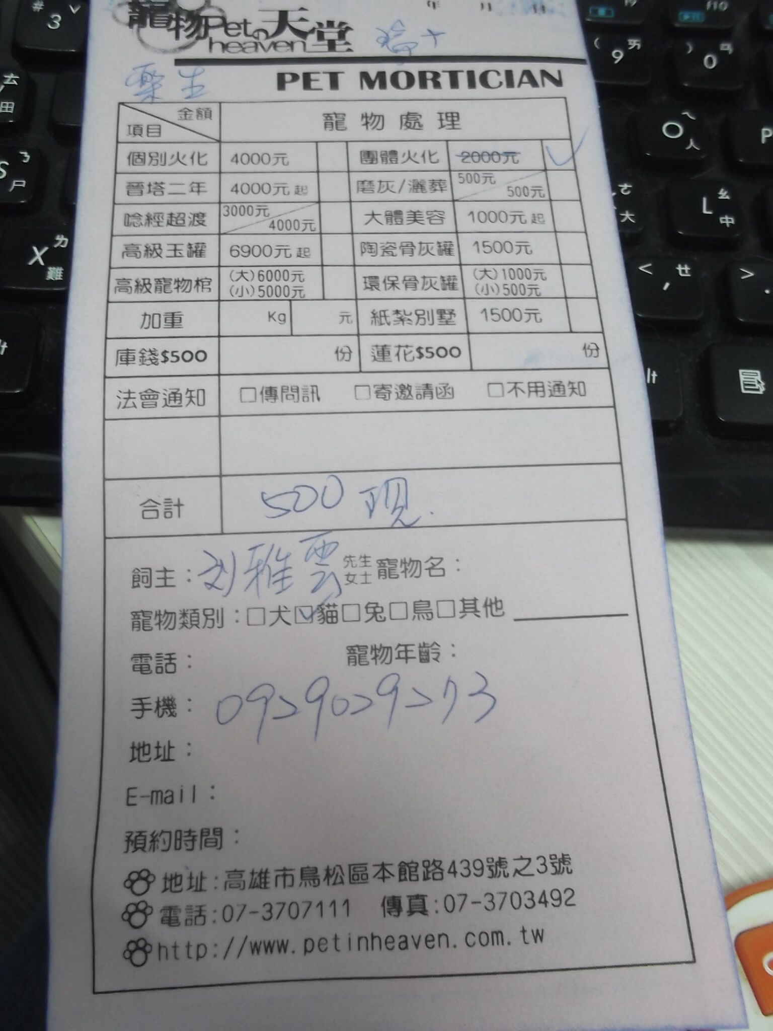 收據可抵稅請將地址mail至cashier@tnrtw.org0912940006763