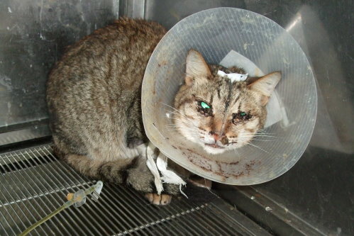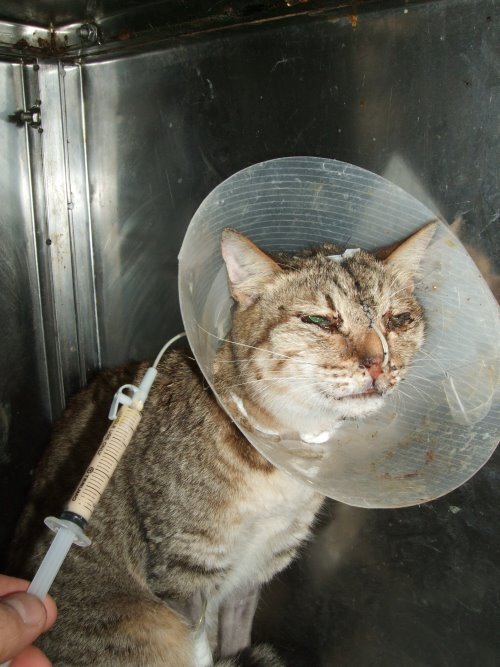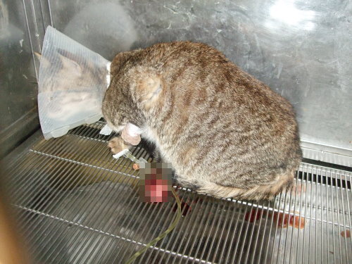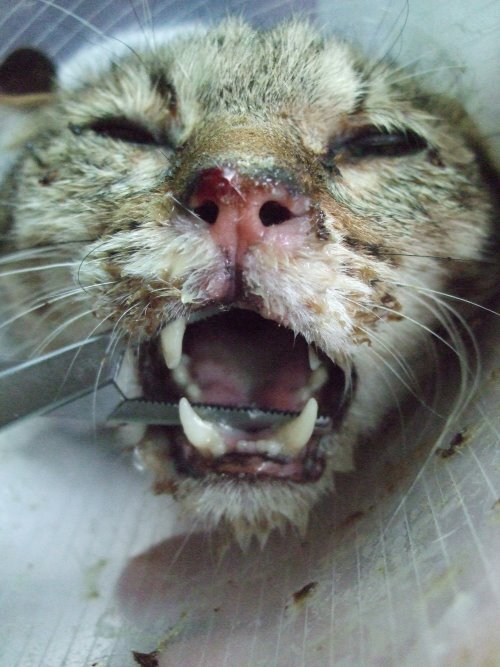 主題: 鼻腔口腔潰瘍兩次流產的虎斑 申請者姓名: 蔡葦澄 花色: 申請日期: 2012-05-05 22:52:35 申請者部落格: 申請者臉書網址: 所在縣市/合作醫院: 台北市/澄毅動物醫院 治療費用: 9950元 需求人數: 11人 已結案 (2013-02-23 14:58:31) 報名人員: 董四海(已付款)、sandy_huanglichuan(已付款)、Sam(已付款)、鍾玉芬(已付款)、小飄(已付款)、嘟嘟(已付款)、鄧淑香(已付款)、OLivia Lee(已付款)、呂俊民(已付款)、曉嵐曉嵐(已付款)、嘟嘟(已付款)、 候補人員: 小舟、小舟、 動物病情說明: 這隻可憐的虎斑母貓3/12日被捕抓進收容所,3/18可能因為緊張流產,3/24嚴重鼻氣管炎、口腔鼻腔潰瘍帶出就醫,上點滴隔天又排出死胎,與上次流產相隔七天,這些日子貓貓可能都沒有進食,所以沒有力氣很把死胎排出,血液檢查白血球3.8萬,有感染的問題,打點滴、抗生素治療,插鼻餵管每天灌食兩罐雞肉泥,慢慢願意聞食物後拔除餵管,讓他自己進食,等確認會自己吃東西,就持續投藥,等感冒好了進行結紮。共住院16天,打十二天點滴,鼻餵管灌食9天,醫療費用共9950元。