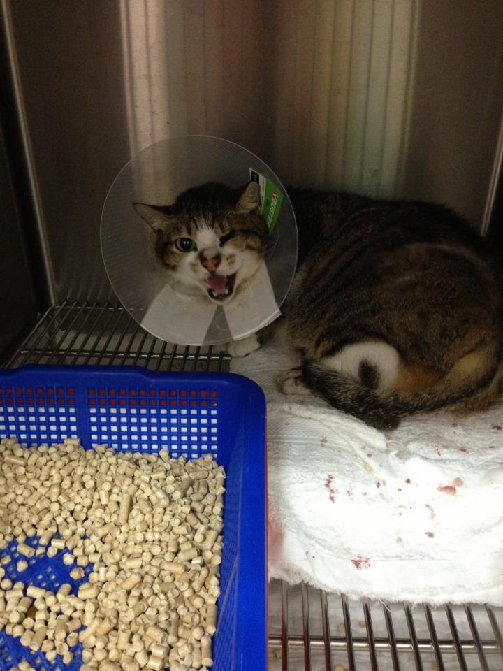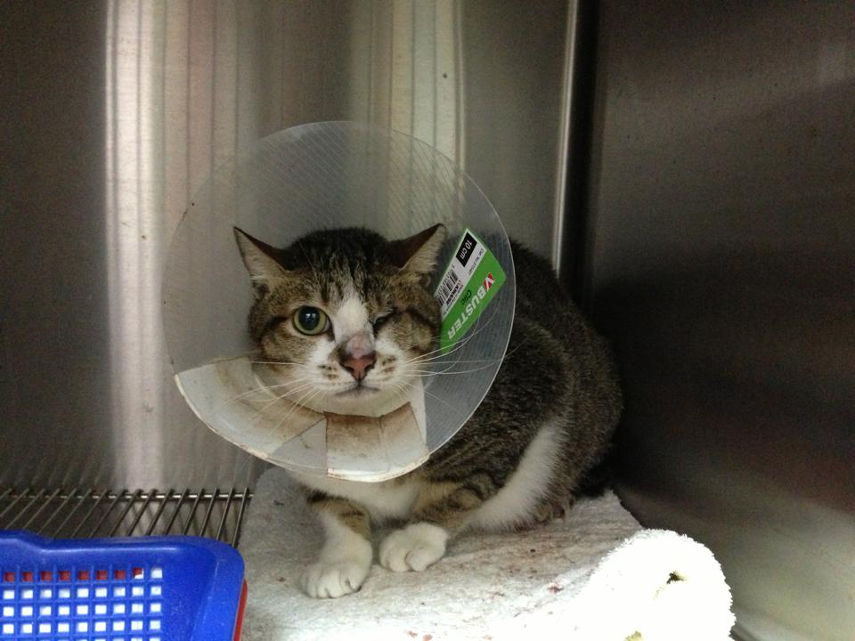 ,經過近1年的治療,才慢慢的收口、痊癒,從原本的幼貓,也長成了大貓,
