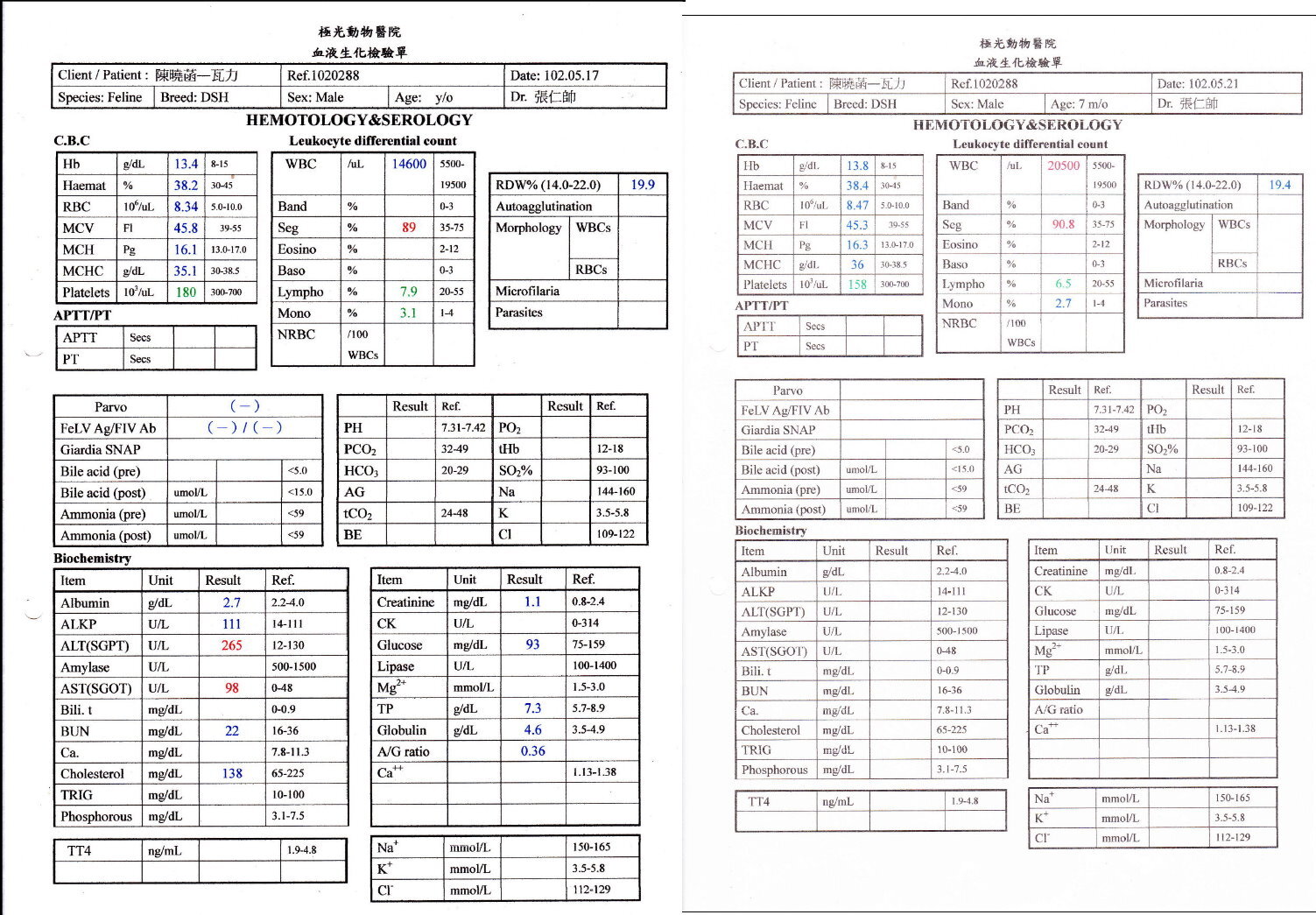 主題: 橫膈疝氣肝臟、小腸和脾臟都進入了胸腔臟器壓迫病變 申請者姓名: 臺北市支持流浪貓絕育計劃協會 花色: 申請日期: 2013-07-02 13:07:03 申請者部落格: 申請者臉書網址: 所在縣市/合作醫院: 台北市/極光動物醫院 治療費用: 37215元 需求人數: 39人 已結案 (2013-09-03 16:20:21) 報名人員: Ficus Hsu(已付款)、烏鴉(已付款)、張傑凱、Jackie Kang(已付款)、Roy Chen x2(已付款)、Sunny Chen(已付款)、Clare 王小姐(已付款)、Walami Lin(已付款)、RuBy Lee(已付款)、dodo(已付款)、邱小咪(已付款)、Shirley Tsai(已付款)、Szuhan Liu(已付款)、林慧美(已付款)、yuki(已付款)、yuki x3(已付款)、麵貓匪(已付款)、江偵安(已付款)、Grace Luo(已付款)、momo(已付款)、Christina Chen x5(已付款)、鯉魚 x2(已付款)、Judy媽(已付款)、Kelly(已付款)、Chris Chiu(已付款)、Liwing Lin(已付款)、貓咪麻麻 x5、張傑凱(已付款)、小娃(已付款)、Fify Hung(已付款)、mandafreesia(已付款)、嚕咪(已付款)、杜玟嬅、凌逸雲(已付款)、 候補人員: 動物病情說明: 瓦力因為眼睛受傷被民眾通報,志工曹小姐捕捉,送醫之後X光檢查發現除了眼睛的病灶外,還有橫膈疝氣,大部分的肝臟、小腸和脾臟都進入了胸腔,看起來有一小段時間了,有些臟器已經被壓迫到出現病變,要立刻手術,以免造成不可逆的傷害,慶幸的是器官變形但是還沒有到壞死的程度,手術過程並沒有做任何切除,順利的將所有的臟器復位和橫膈修補完成,術後瓦力恢復得很好,個性也很親人,一摸就滾滾,很純真