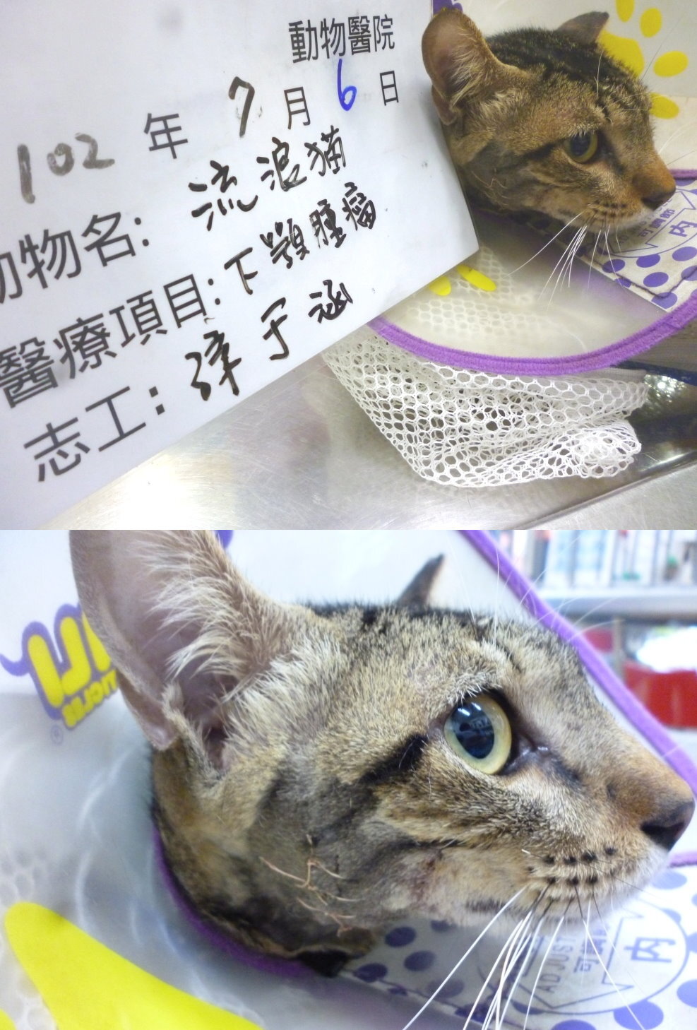 主題: 下顎淋巴瘤 申請者姓名: 孫于涵 花色: 申請日期: 2013-07-12 19:07:02 申請者部落格: 申請者臉書網址: 所在縣市/合作醫院: 高雄市/人愛動物醫院 治療費用: 3330元 需求人數: 4人 已結案 (2013-07-16 12:25:29) 報名人員: Mavis Yang(已付款)、April Tsung(已付款)、思葦(已付款)、朱朱大人(已付款)、 候補人員: 動物病情說明: 剛誘捕回準備TNR的貓咪