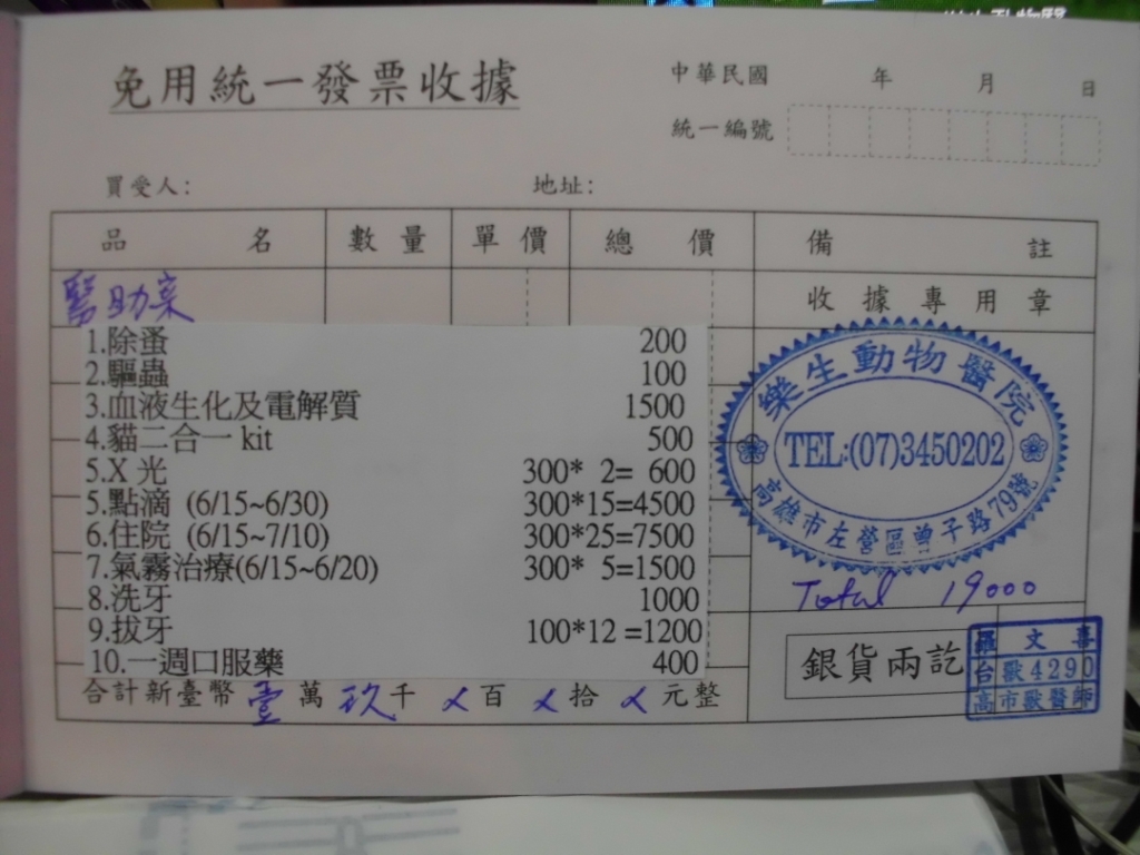 8.氣霧治療(6/15~6/20) 300*5=1500