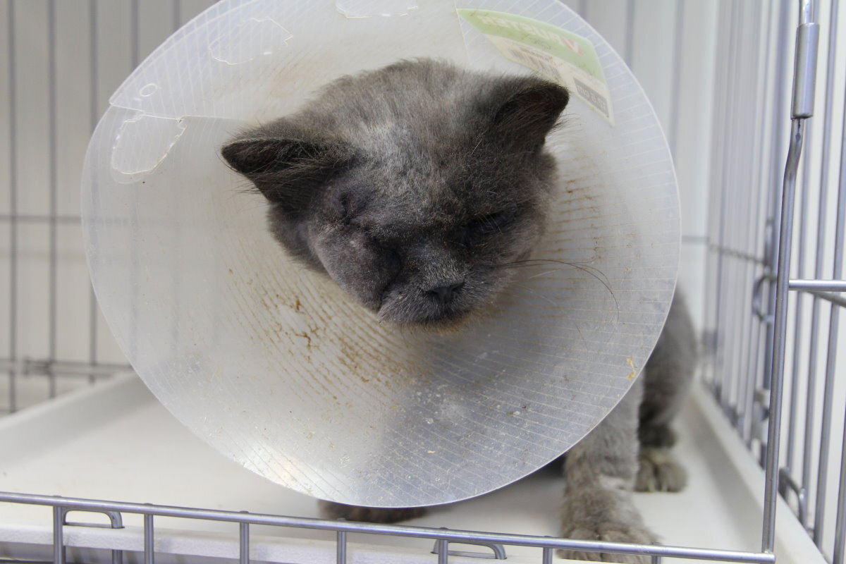 全身毛掉很多 只剩下不多的毛 身體皮膚也多處潰爛 雙眼差不多潰爛了