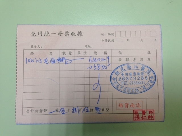 6/24毛毛健康狀況穩定,體重3.8公斤,先施打預防針
