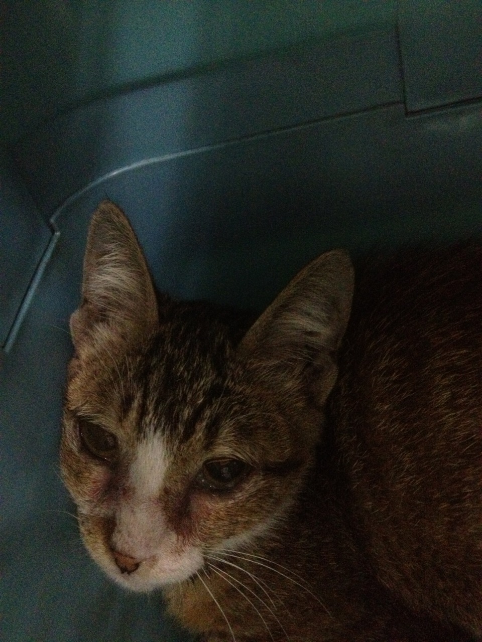 主題: 高雄小港 荒廢的托兒所旁的發燒生病小貓 申請者姓名: 劉雅雲 花色: 申請日期: 2013-07-29 08:56:28 申請者部落格: 申請者臉書網址: 所在縣市/合作醫院: 高雄市/泰安動物醫院 治療費用: 4300元 需求人數: 10人 已結案 (2013-09-03 16:27:01) 報名人員: Kim Meng(已付款)、ja_cat x2(已付款)、Lynn(已付款)、龍灰灰 x2(已付款)、KIKI(已付款)、盧琳達(已付款)、Ke Ke、戴珊珊(已付款)、Even Chen(已付款)、 候補人員: 動物病情說明: 幾個月前發現廠橫路這區大量的浪貓, 但發現時所有的母貓幾乎都在哺乳若是肚子已經非常大快生了, 當時誘捕到一些公貓和一兩隻可以紮的母貓, 兩三個月後現在陸續來看到很多小貓都帶出來了, 但很多的感冒生病了, 我用誘捕籠抓到一隻病奄奄的,隔天又來抓結紮剛好看到一個小男生鬼鬼祟祟在路邊的車邊蹲下來好像在抓小貓,我躲在車上觀察看是否有虐貓的行為, 結果小男生是抱起生病的小黑貓跟他玩, 過去詢問才知道他都偷偷來跟小貓玩因為媽媽不准他來, 他說還有一隻眼睛黏住嚴重但不見了很擔心,因為小黑有點怕生但小男生逗他會出來抱住後掙脫掉又要抓很久才能抓到, 終於靠著小男生的幫忙抓到了黑貓.