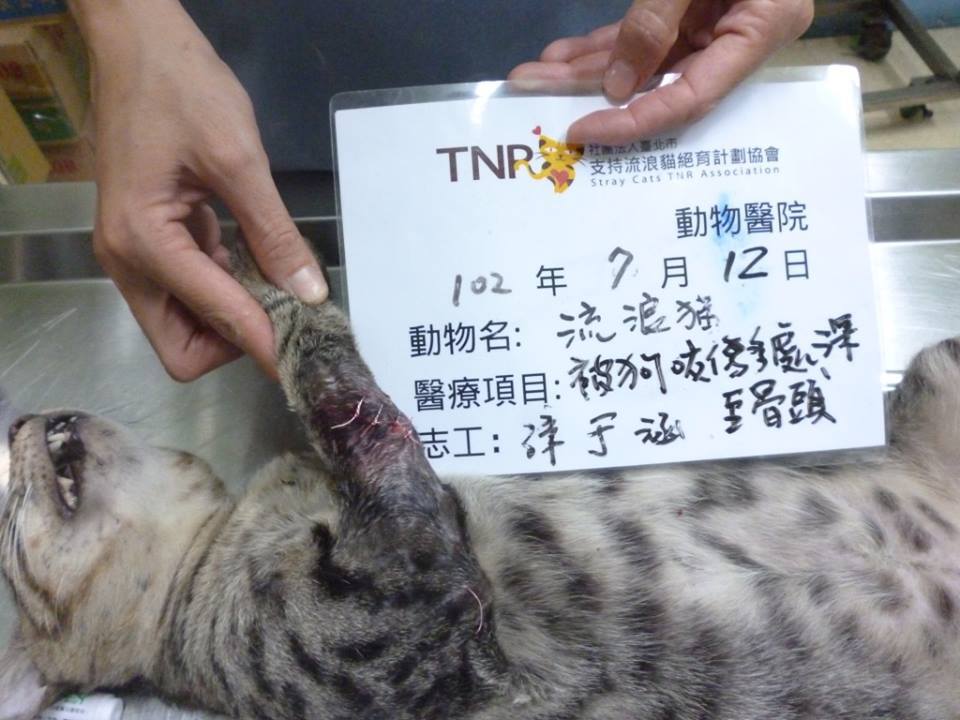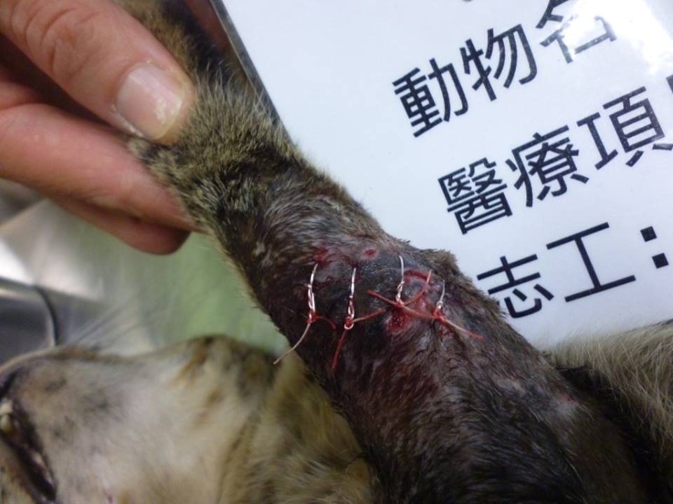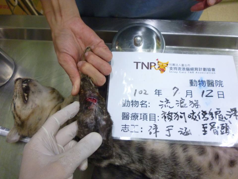 應該是被狗咬傷,其它部位也都有大大小小齒痕傷口動物近況說明: 恢復狀況良好,還是很兇狠的流氓