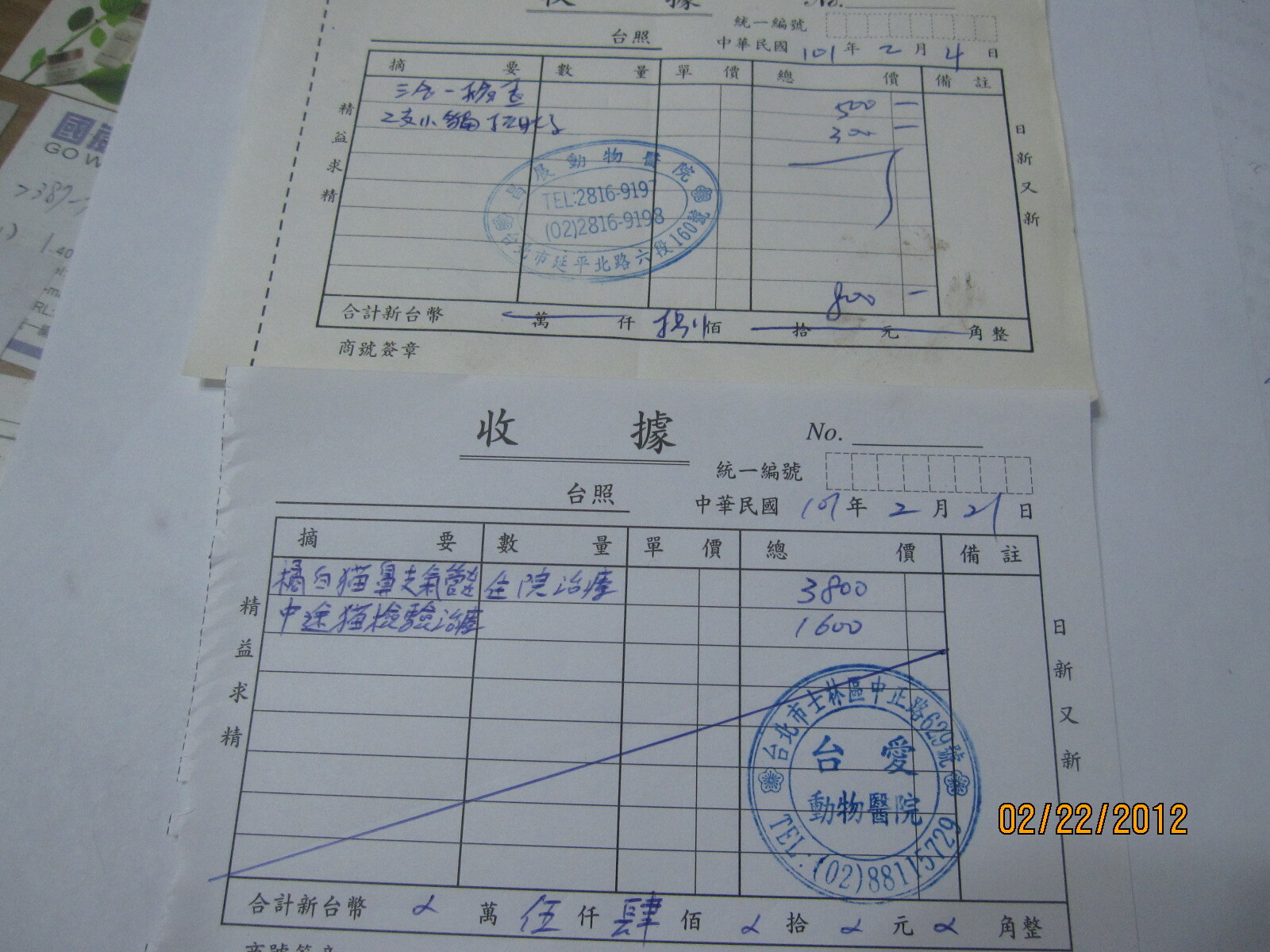 另在昌展動物醫院中途貓血檢費用跟小貓拉肚子一併申請(800)