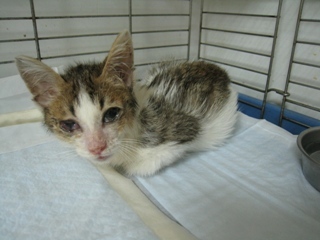 主題: 上呼吸道感染的小貓 申請者姓名: Rita 花色: 申請日期: 2012-05-09 12:42:19 申請者部落格: 申請者臉書網址: 所在縣市/合作醫院: 新北市/銘德動物醫院 治療費用: 6430元 需求人數: 8人 已結案 (2012-11-25 22:07:03) 報名人員: Vanna Tai(已付款)、cheng(已付款)、LukeC(已付款)、Maggie Kuai(已付款)、Maggie Kuai(已付款)、Maggie Kuai(已付款)、江純慧(已付款)、Fiona Sun(已付款)、 候補人員: 小舟、小舟、小舟、 動物病情說明: 這是一隻嚴重上呼吸道感染的小小貓,是由輔大愛狗社的同學在學校的餐廳後面發現到的,