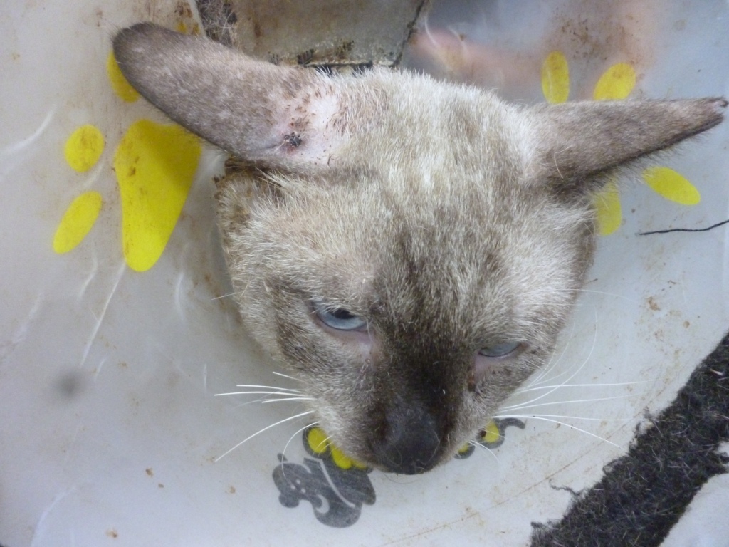 主題: 鳳山平等路 被狗咬傷的暹邏貓 申請者姓名: 劉素鳳 花色: 申請日期: 2013-08-08 07:53:19 申請者部落格: 申請者臉書網址: 所在縣市/合作醫院: 高雄市/人愛動物醫院 治療費用: 4950元 需求人數: 6人 已結案 (2013-09-03 16:25:11) 報名人員: PS Yeh x2(已付款)、00(已付款)、Yuyu Amy Wu(已付款)、Cathy Chang(已付款)、Ping Meng(已付款)、 候補人員: 動物病情說明: 這是專案結紮在鳳山平等路這邊發現疑似被遺棄的暹邏貓, 誘捕結紮才發現有嚴重的咬傷. 傷口很深很嚴重, 經過清創與縫合目前已癒合, 原本考慮是否送養, 但此貓非常兇已有野性, 所以會原地放養, 附近居民會放食餵養.