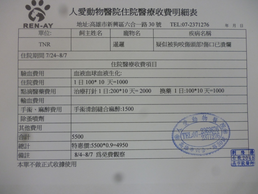 收據可抵稅請將地址mail至cashier@tnrtw.org0912940006763