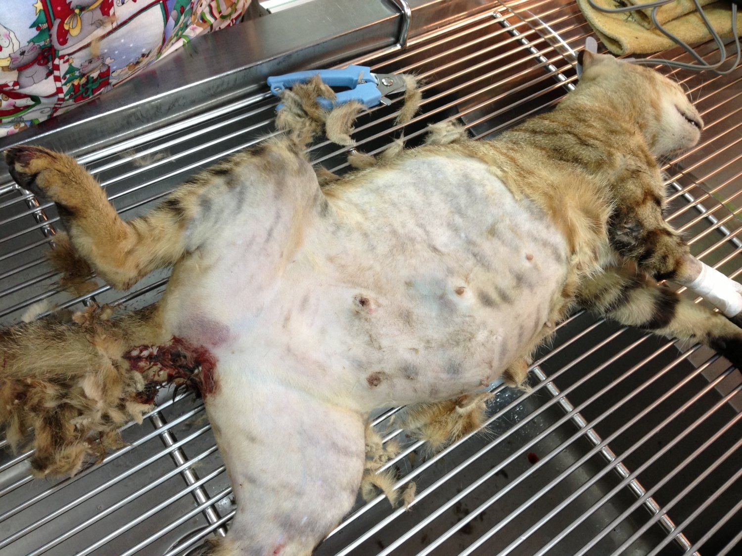 且母貓還有橫隔膜疝氣(因是被車撞擊造成),也一並手術,並給予結紮,經過20天的住院治療,母