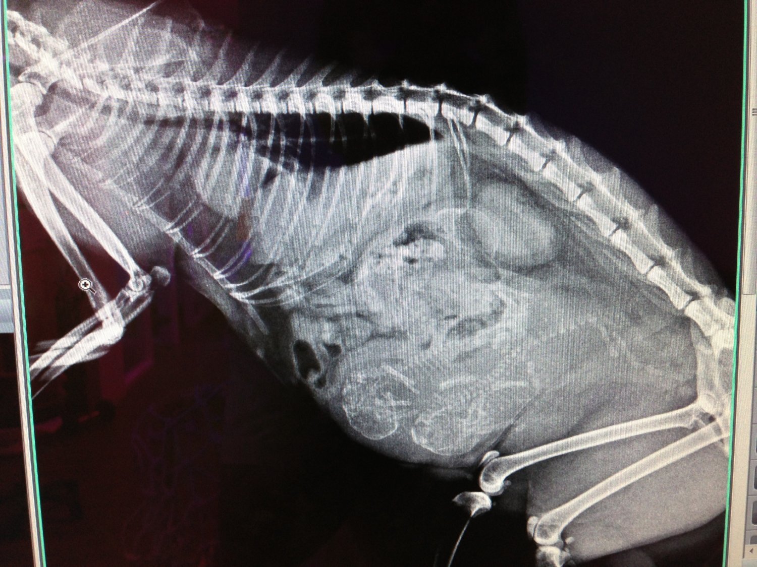 院進行治療,照X光及超音波,確定是難產,肚子裡的小貓,也已都無心跳,而