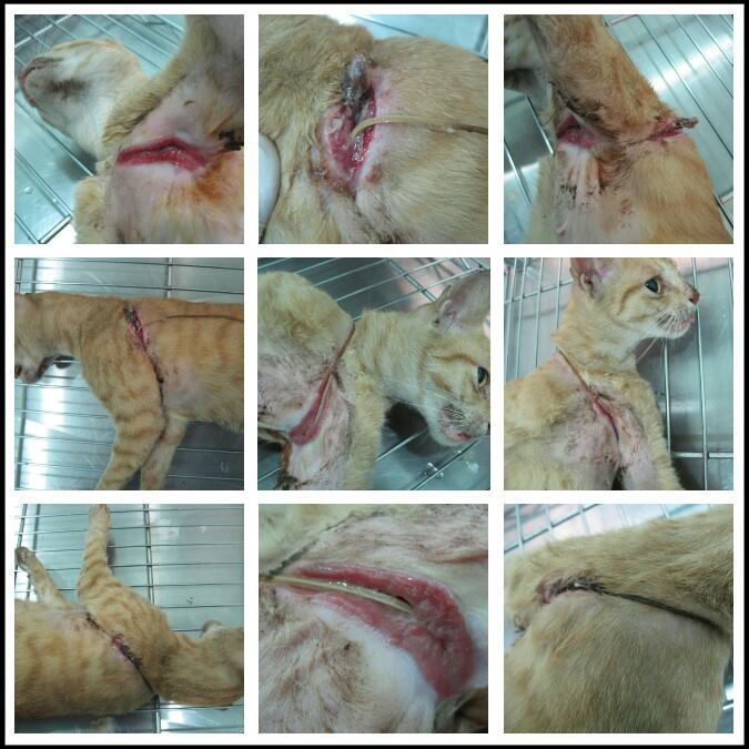 目前貓咪因為身體虛弱所以手術縫合與點滴治療!動物近況說明: 橡皮筋貓7/20出院了!