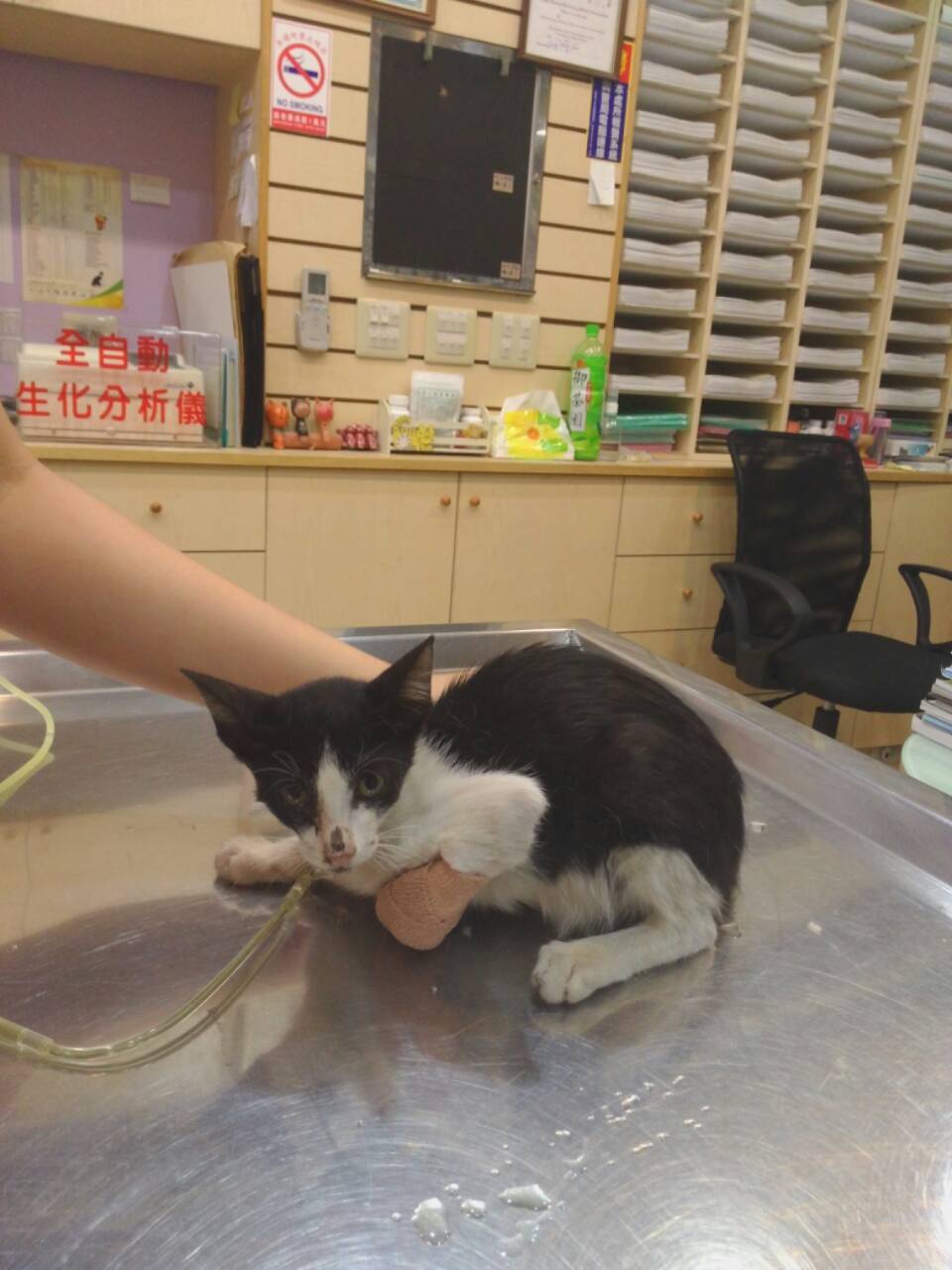 主題: 四個月大的小貓咪 申請者姓名: 徐德發 花色: 申請日期: 2013-08-09 12:51:10 申請者部落格: 申請者臉書網址: 所在縣市/合作醫院: 新北市/雙十動物醫院 治療費用: 5250元 需求人數: 12人 已結案 (2013-09-03 16:24:23) 報名人員: Kate Wang x2(已付款)、崔鶯鶯、Claire Chen(已付款)、小黃(已付款)、pinlun(已付款)、Bonnie Yao(已付款)、潘逸群(已付款)、Lee Chloe x2(已付款)、kikim2171(已付款)、meemee(已付款)、林喬喬(已付款)、 候補人員: 動物病情說明: 之前抓到一隻患有貓瘟+呼吸道疾病的小貓咪(4個月大),然後送去一家動物醫院進行治療(檢查+住院+打點滴、血清),住院7天後,因為已花費近9000元,所以在經濟考量下,只能忍痛先帶小貓出院。醫院有告知小貓咪目前不會吃東西和喝水,所以只能用灌食的。但目前帶回家2天,一直無法順利灌食,因為小貓咪會非常的抗拒。我擔心持續不進食,會讓牠沒有足夠的抵抗力。想請問貴協會這部分有什麼建議嗎?或是說能夠有住院較便宜的動物醫院嗎?因為原本的動物醫院住院費打7折後一天是840元(因為是流浪貓,所以有打7折),想請問是否有更便宜的動物醫院?因為我們希望還是無法餵食的話,就要送小貓咪到醫院。 動物近況說明: 目前有我代為照顧,希望等之後做完TNR,再放回原本地點