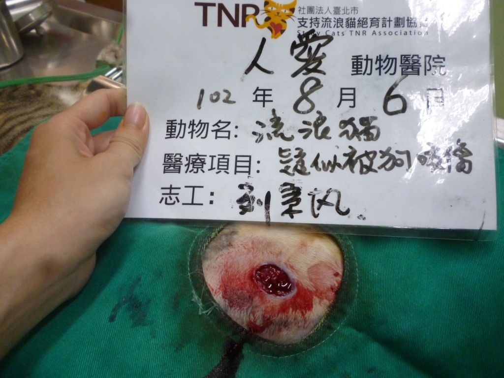 主題: 疑似被狗咬傷 申請者姓名: 劉素鳳 花色: 申請日期: 2013-08-27 07:16:34 申請者部落格: 申請者臉書網址: 所在縣市/合作醫院: 高雄市/人愛動物醫院 治療費用: 4950元 需求人數: 6人 已結案 (2013-09-19 17:51:42) 報名人員: Emma Lai(已付款)、Cathy Kao(已付款)、Shih-Chi Wang(已付款)、彭小豬(已付款)、MomoLi(已付款)、嵐羽娘、牛牛(已付款)、 候補人員: 動物病情說明: 在六合一路捕獲之流浪貓至醫院結紮時,手術過程發現右後大腿疑似被狗咬傷一個約十元硬幣之傷口已潰爛至肌肉層, 傷口清創後, 慢慢復原, 現在已經康復了, 會把她R回原地並已有施打狂犬疫苗了喔. 感謝大家的善心捐助.