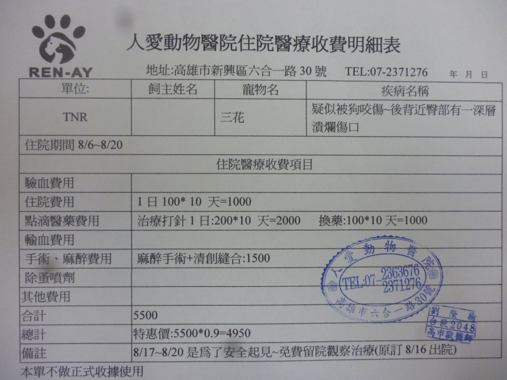 收據可抵稅請將地址mail至cashier@tnrtw.org0912940006763