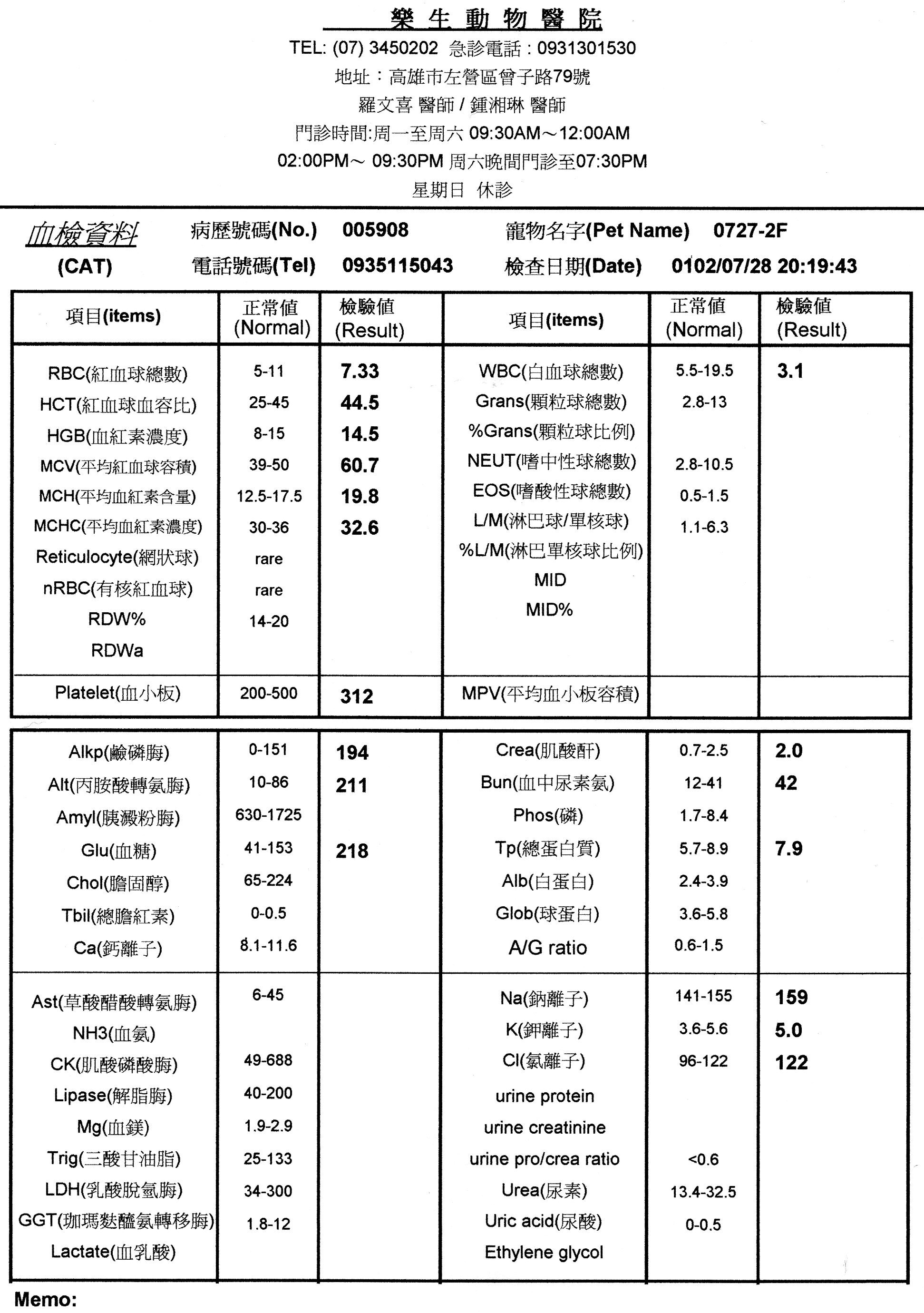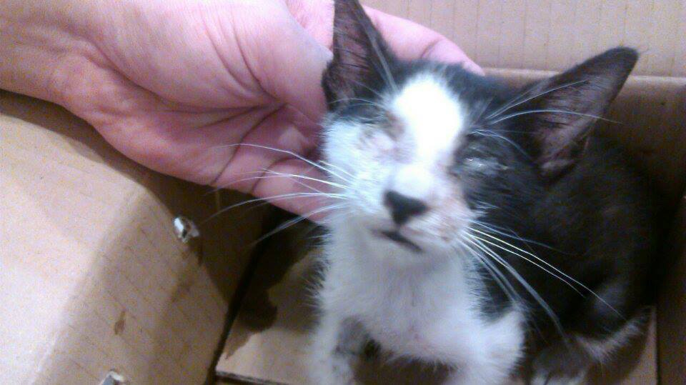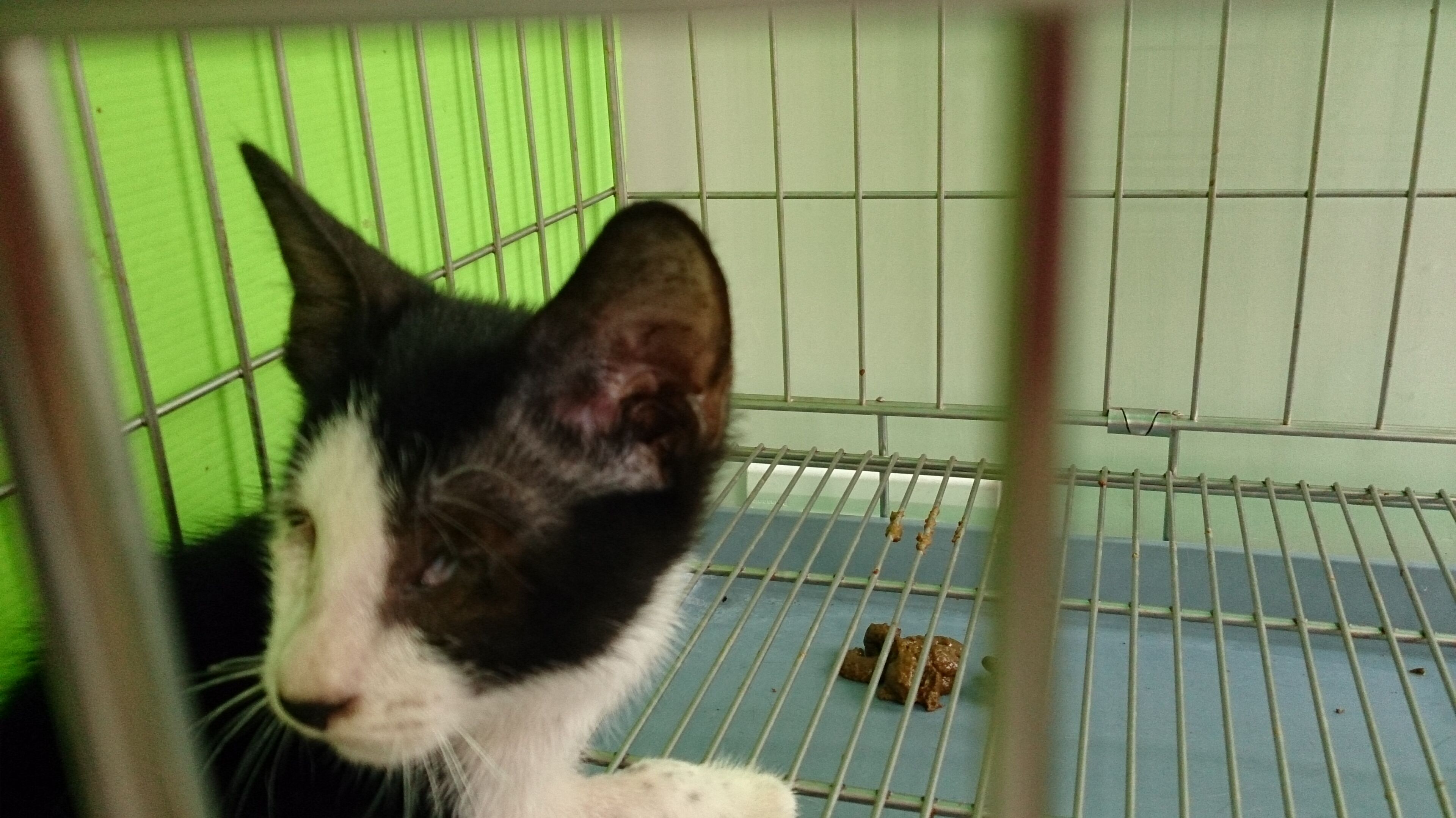 主題: 六合夜市兩眼受傷的小貓 申請者姓名: 劉素鳳 花色: 申請日期: 2013-09-05 18:51:28 申請者部落格: 申請者臉書網址: 所在縣市/合作醫院: 高雄市/樂生動物醫院 治療費用: 12700元 需求人數: 14人 已結案 (2013-09-19 17:50:58) 報名人員: Ida Tsai(已付款)、Jau Shiang Hsieh(已付款)、楊乃維(已付款)、楊乃維(已付款)、vigia(已付款)、林艾蓁(已付款)、Hope Liao(已付款)、哇咧蹦 x7(已付款)、 候補人員: 動物病情說明: 這也是六合夜市的攤販來電告知六合夜市有隻小貓兩眼受傷跟日前兩眼受傷的小貓情況很像, 因為時間很晚, 所以通知樂生拜託開門經醫生查看右眼已無眼球、而左眼眼球已破裂, 看了總是讓人心酸, 貓咪眼球破裂那眼治療中. 動物近況說明: 在醫院治療住院時, 這隻和日前類似症狀那隻貓雖然都雙眼看不見, 但卻隔著籠子在玩耍, 真是讓人不捨, 貓咪治療後, 破裂的那眼球也是萎縮了, 所以之後的生活是看不見的, 出院後會安置並會看看是否能有更好的家庭能收容他. 謝謝大家的善心捐款幫助.