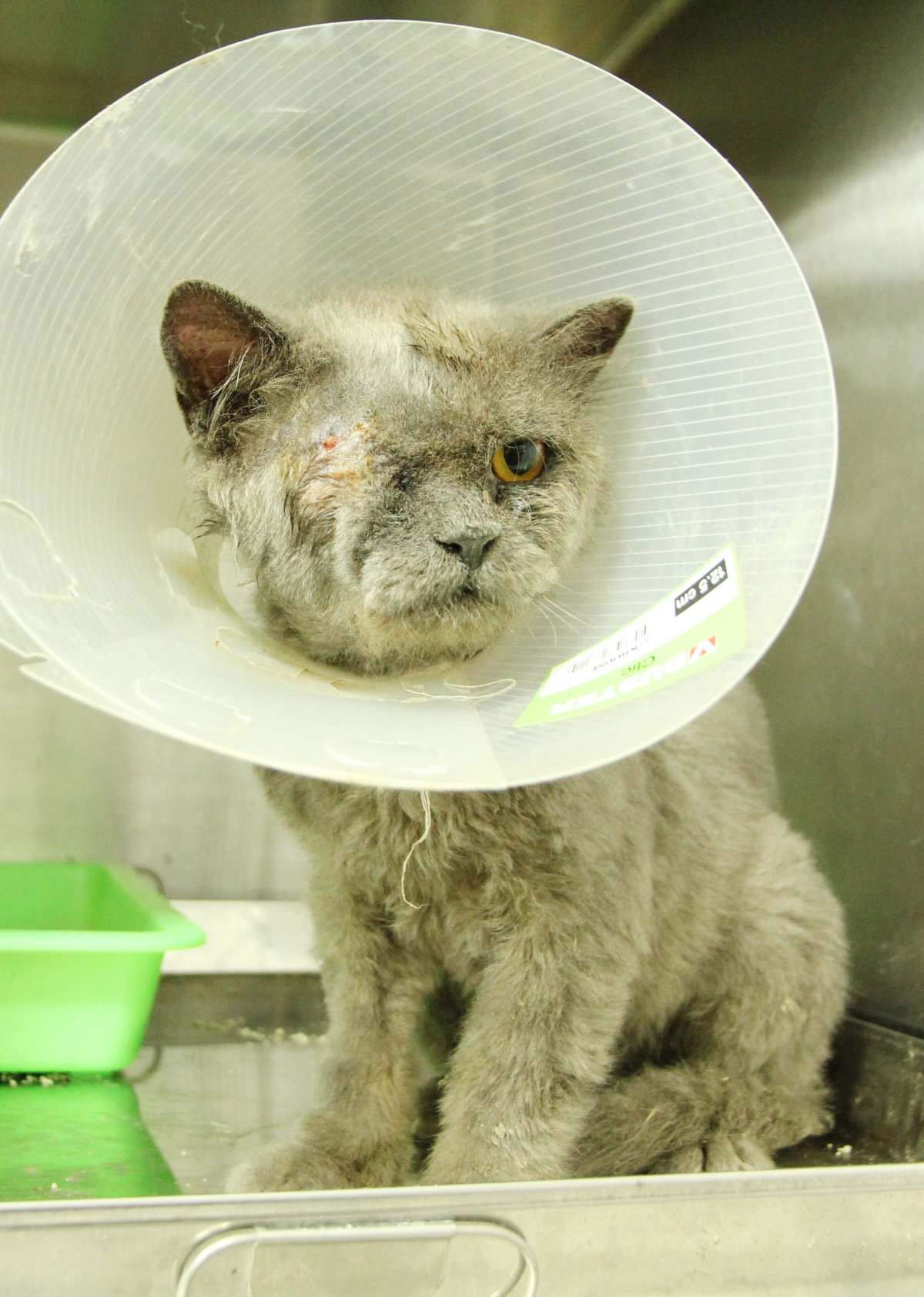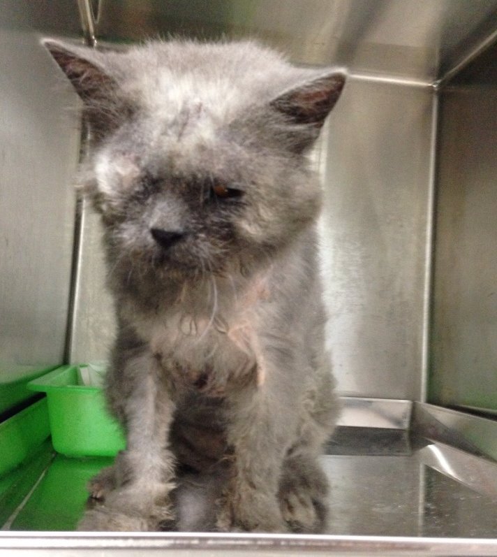 全身毛掉很多 只剩下不多的毛 身體皮膚也多處潰爛 雙眼差不多潰爛了