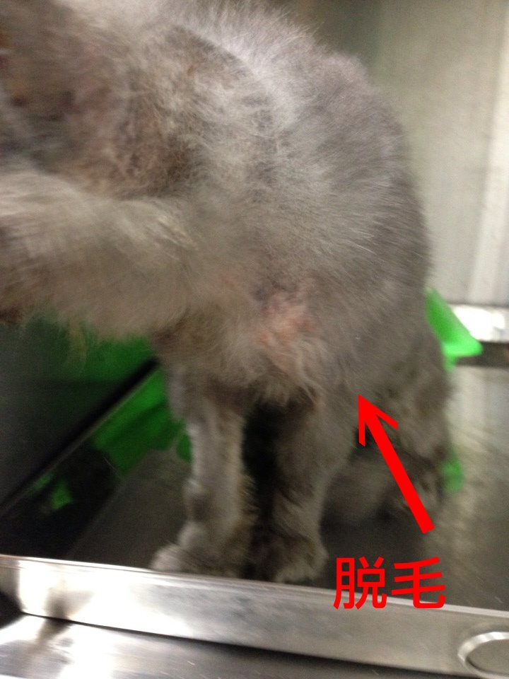 調整藥量後毛卻一塊塊掉落,伴隨許多的皮屑,檢驗不出其他物質,懷疑是混合感染,先給予黴菌藥治療,目前尚在住院試著調整出最適合的藥量。