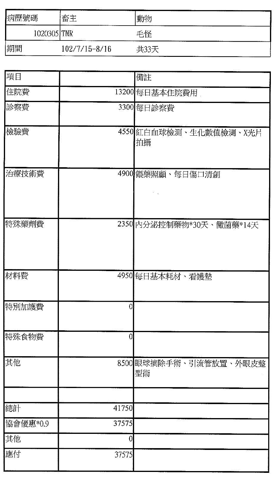 7/8安排手術結紮並摘除右眼,因為眼球萎縮,無視力,有膿樣分泌物,為避免日後反覆感染,只好摘除眼球。