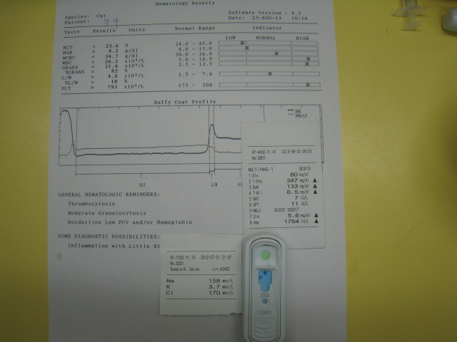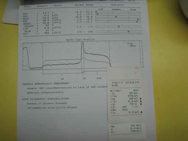 第三次的血檢有看到腎指數下降,但食慾並沒有恢復到主動進食,