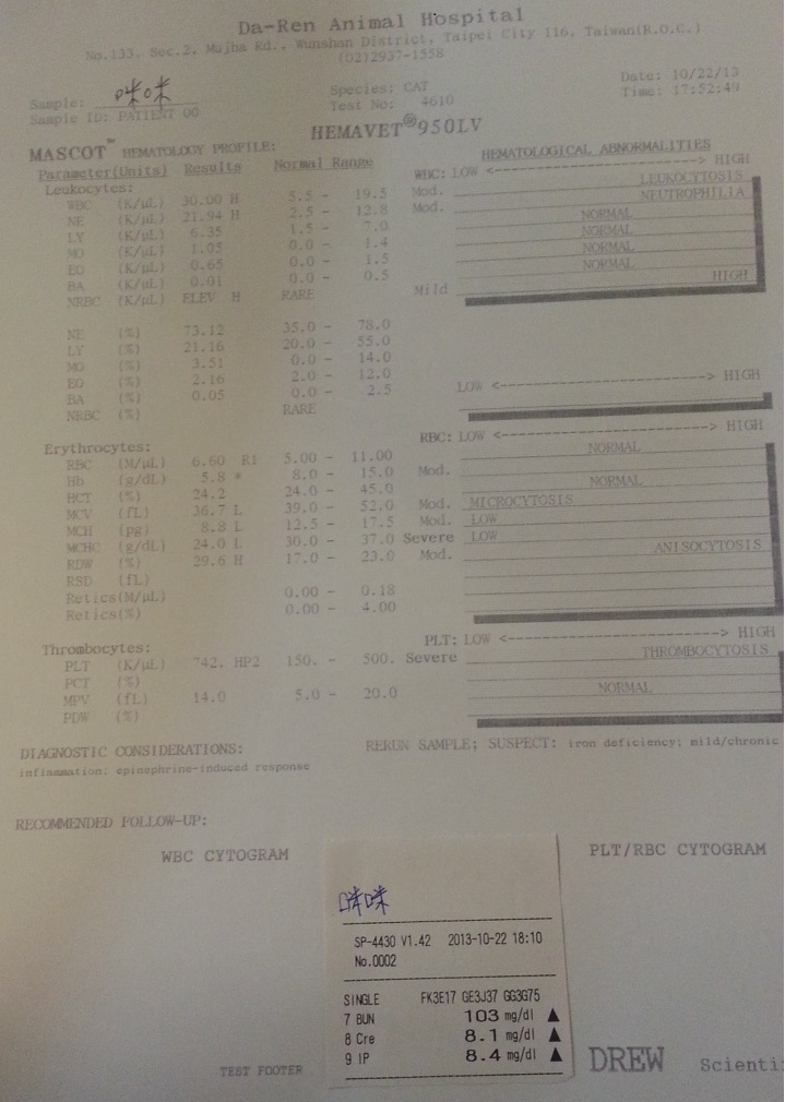 目前不勉強咪咪作其他侵入治療,以讓她多吃點為主,