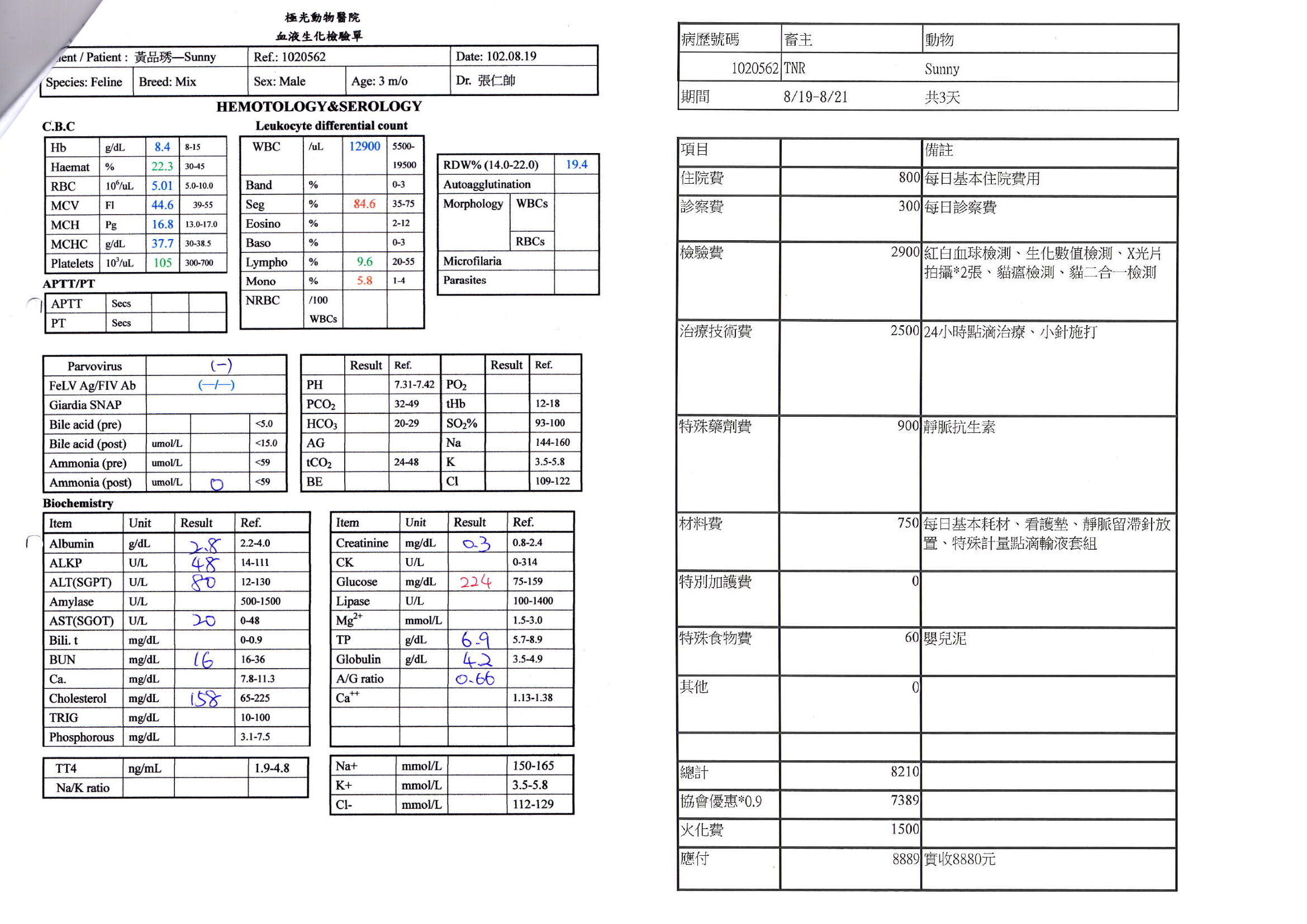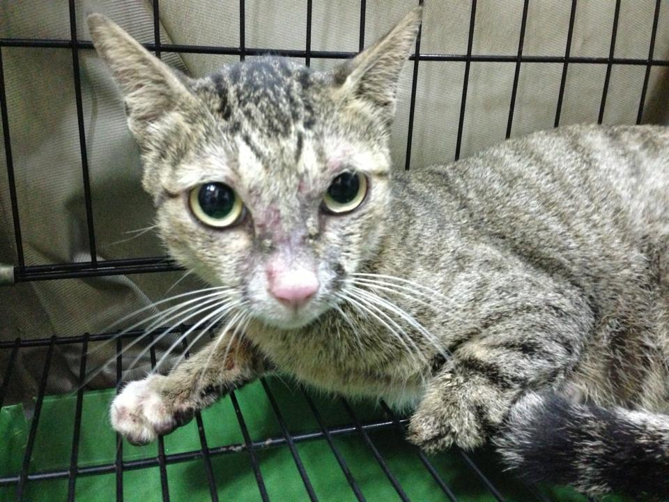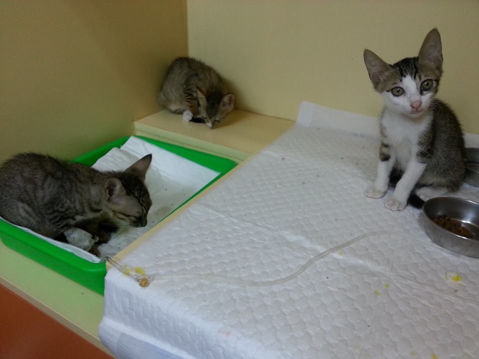 小虎斑突然發燒出現類似神經症狀,送醫住院觀察,醫師檢驗貓瘟、愛滋白血、血檢通通正常,本來以為是單純的感冒前兆,怎知晚上抽筋越來越激烈,還收到病危通知,醫師懷疑是腦部發育不全造成的狀況,只希望點滴能夠紓緩他的不舒服,24小時看護醫療,隔日貓咪還膩在手上撒嬌,發出很輕微的呼嚕聲,本來小不拉機的一路拉拔長大,突然出現這種狀況,心痛不已,又不知如何是好,只希望貓咪可以平安度過,隔日還帶了同胎的兄弟姊妹到院探視,希望親情的溫暖可以帶來一些求生意志,但事與願違,貓咪在第三天交完功課,畢業了....