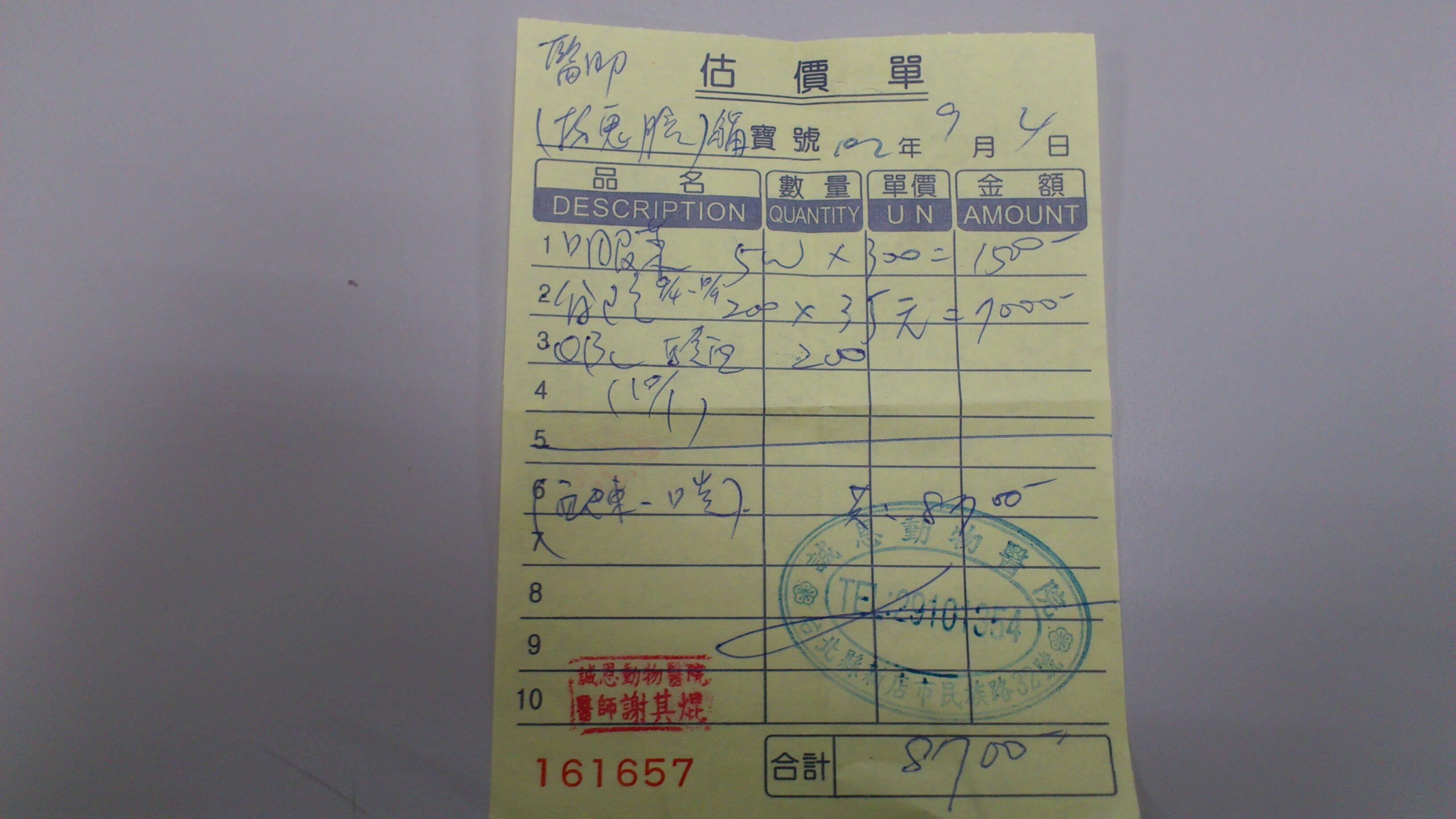 在誠恩治療血巴東蟲費用部分共8900