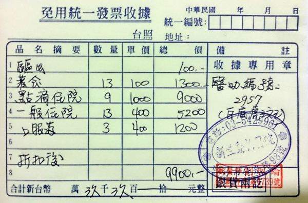 ●醫療項目:口服藥(三週)、點滴輸液治療(8/29-9/6)、灌食(8/29-9/10)。