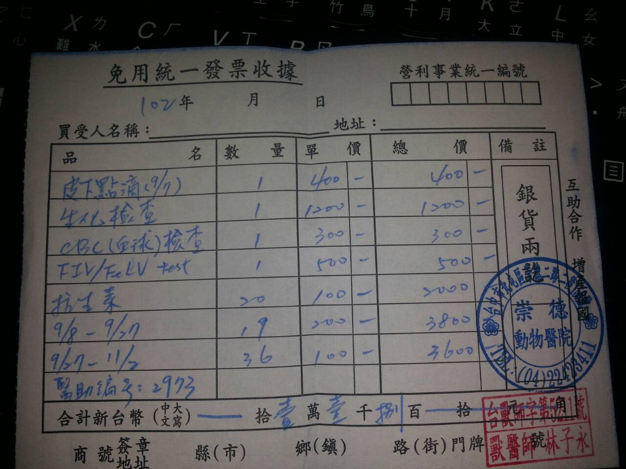 10/26體重2.9公斤..也只能努力提供營養品讓牠可以免疫力上升不要發病!!