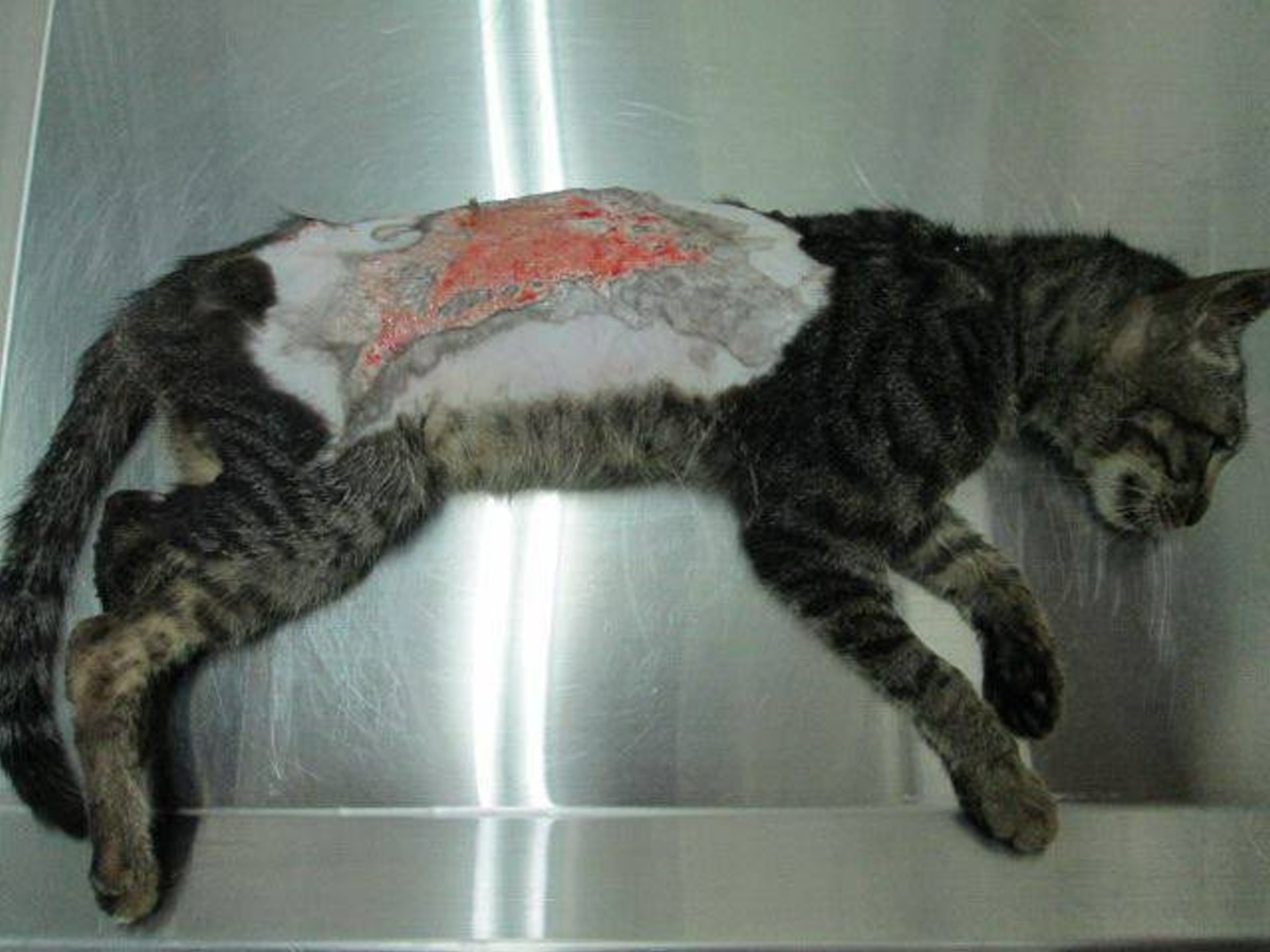 主題: 屏東內埔腐蝕疑似受虐貓咪 申請者姓名: 趙慧曄 花色: 申請日期: 2013-11-10 21:22:43 申請者部落格: 申請者臉書網址: 所在縣市/合作醫院: 屏東縣/愛生動物醫院 治療費用: 12600元 需求人數: 14人 已結案 (2014-01-10 18:00:26) 報名人員: 張小寬(已付款)、江黑娜(已付款)、江黑娜(已付款)、周先媛 x2(已付款)、Kiki Liang(已付款)、Bu Ding Yang(已付款)、陳玉芬(已付款)、Michelle Lin(已付款)、大聲說 x5(已付款)、 候補人員: ㄚ黃麻、 動物病情說明: 到底什麼東西讓一隻毛孩子的皮膚變成這樣?
