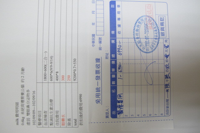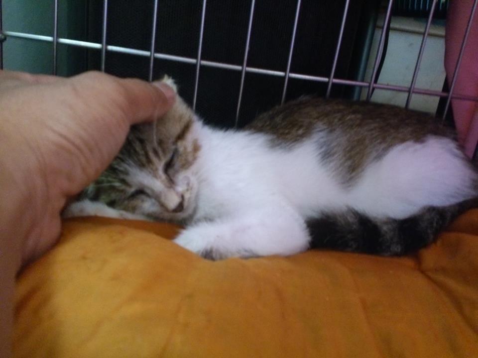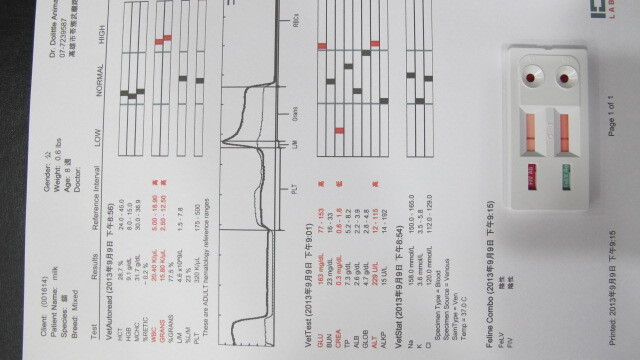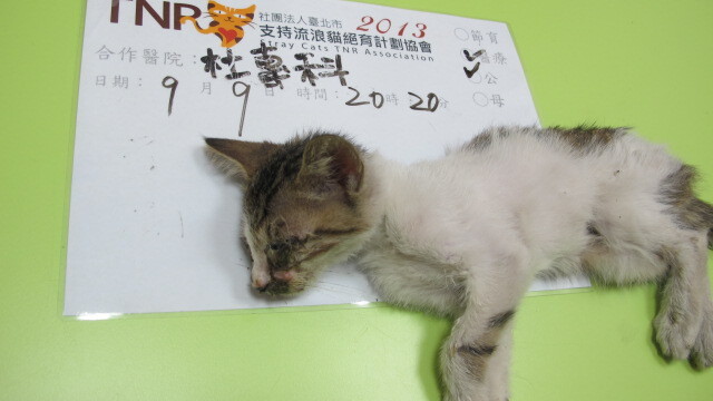 主題: 路倒民宅門口病貓 申請者姓名: Rod Chen 花色: 申請日期: 2013-09-17 10:11:42 申請者部落格: 申請者臉書網址: https://www.facebook.com/rod.chen.9 所在縣市/合作醫院: 高雄市/恩澤動物醫院 治療費用: 6990元 需求人數: 8人 已結案 (2014-01-10 18:00:14) 報名人員: PS Yeh x2(已付款)、徐雅嬪(已付款)、張哲豪(已付款)、Carol Su(已付款)、sharonhuang9(已付款)、Summer(已付款)、vigia(已付款)、 候補人員: 動物病情說明: 9/9日晚間在路邊發現一隻小貓不動躺在民宅門口,經送醫檢查後資料如下: