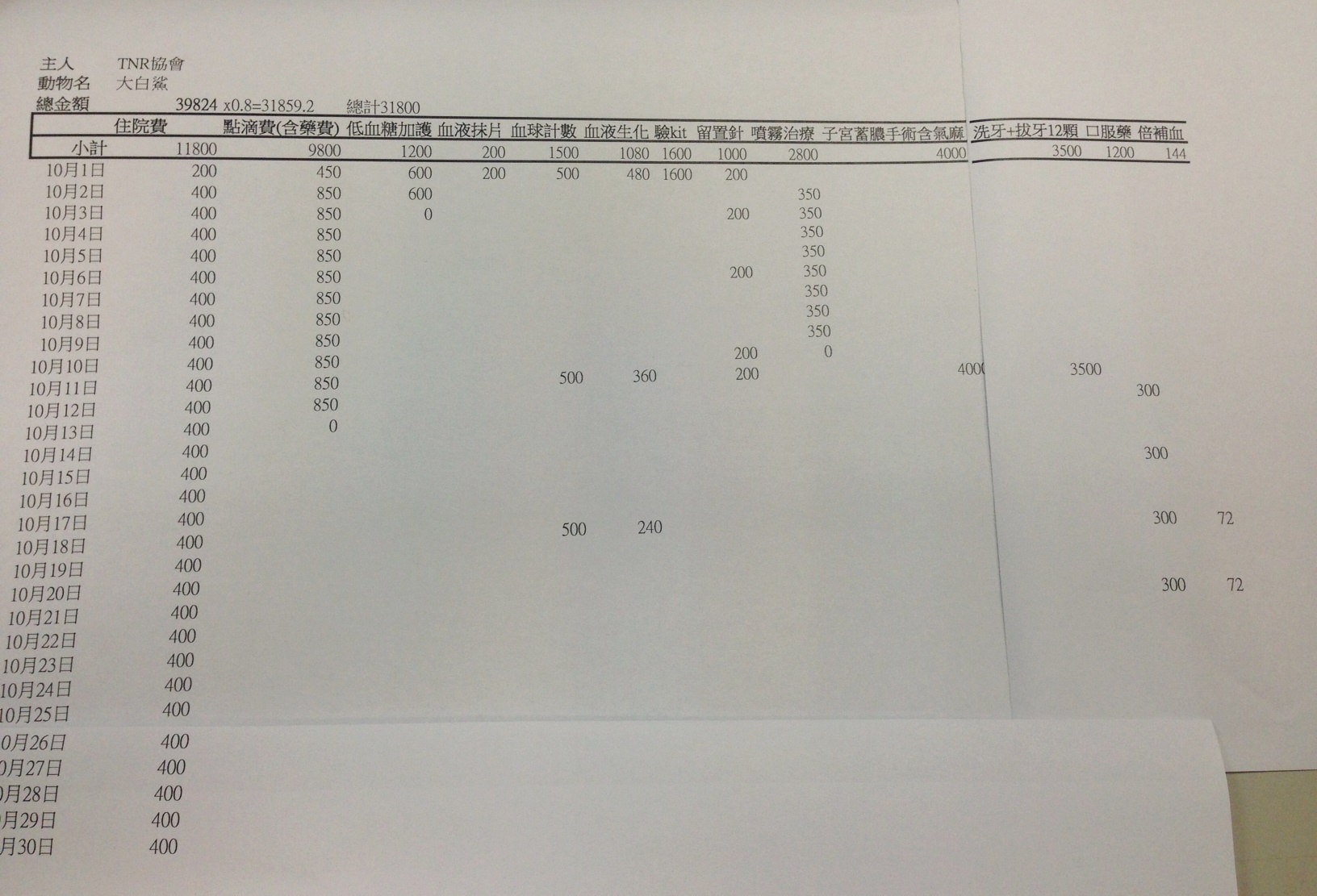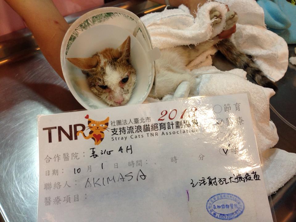 主題: 雙連捷運站通報生病嚴重母貓救援 申請者姓名: 臺北市支持流浪貓絕育計劃協會 花色: 申請日期: 2013-11-03 19:31:58 申請者部落格: 申請者臉書網址: 所在縣市/合作醫院: 台北市/長沁動物醫院 治療費用: 31800元 需求人數: 34人 已結案 (2014-01-10 17:58:41) 報名人員: 吳安蕙(已付款)、ERic YU(已付款)、周小蕾(已付款)、翅膀(已付款)、常歡(已付款)、WaWa Lin、Alyssa Chen(已付款)、傻傻(已付款)、徐國智、Hsu Kuo Chih(已付款)、無名氏(已付款)、Sophia x2(已付款)、joyce chang(已付款)、Miru Lin(已付款)、Mia Chao(已付款)、Clover Lu(已付款)、Jessy Lin(已付款)、Bonnie Lu(已付款)、周信宏(已付款)、vivian(已付款)、Minimini Lu(已付款)、吳喵(已付款)、chiawei(已付款)、00(已付款)、Rabio(已付款)、WeiPing Wang(已付款)、曲豆、曲豆 x2(已付款)、A喵 x3(已付款)、nicole chen(已付款)、蘇小吉(已付款)、JasmineC(已付款)、ERic YU(已付款)、 候補人員: 動物病情說明: 粉絲頁面通報雙連捷運站附近有貓咪嚴重鼻氣管炎,感覺很虛弱,志工Akimasa Tu 前往救援,用網子順利捕捉送醫,嚴重脫水,成貓卻只有1.9kg,二合一、貓瘟檢驗為陰性,肝腎功能正常,外觀檢查,有呼吸道感染,及疑似子宮蓄膿,已先上點滴,待情況好轉,再手術摘除子宮卵巢,所幸貓咪在10天點滴注射治療下狀況已經改善許多,但有些許感染的狀況,懷疑是子宮蓄膿導致,手術中發現貓咪牙齦發炎紅腫,一併進行洗牙共拔除12顆爛牙,術後持續注射點滴觀察兩天,發現食慾胃口正常,持續給予抗生素治療,10/30日恢復健康,也圓了一圈,R回原地由愛心媽媽持續照顧。