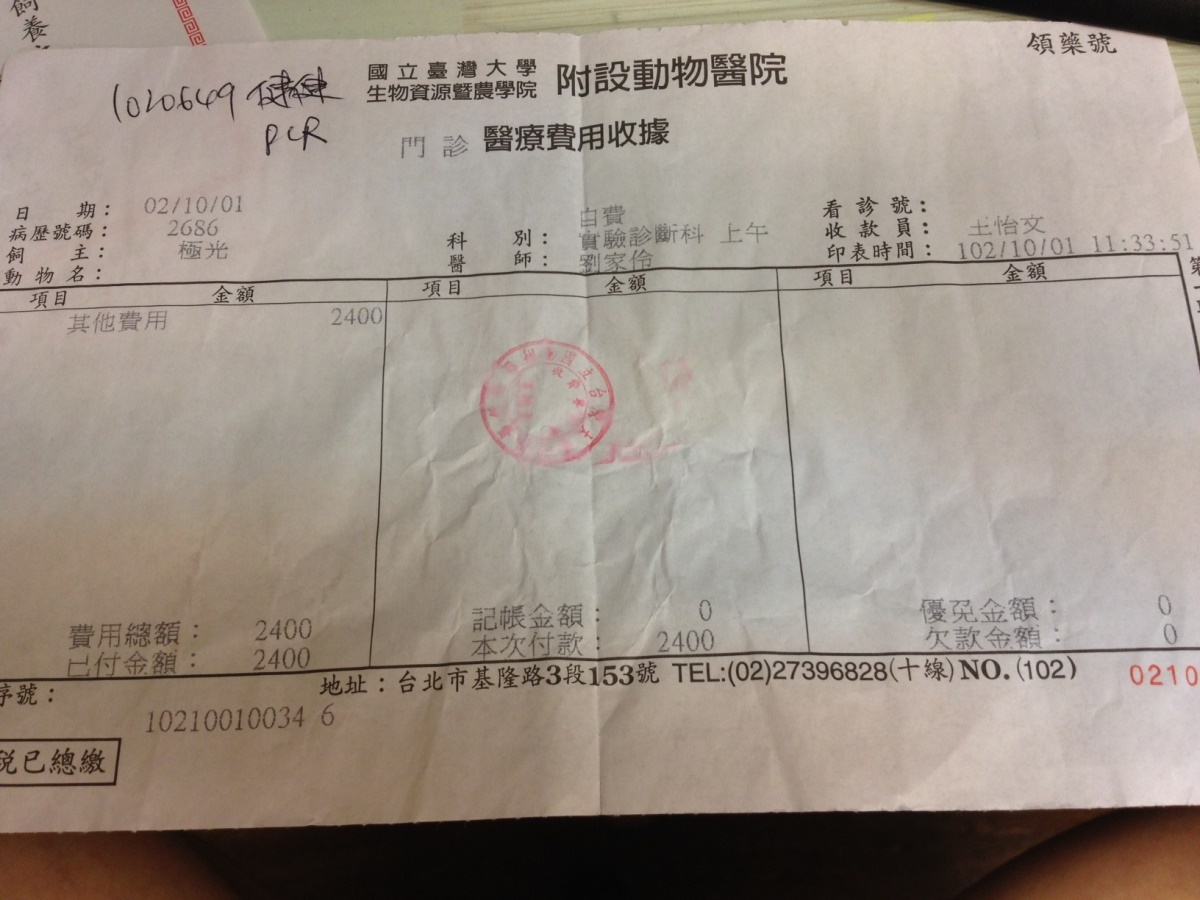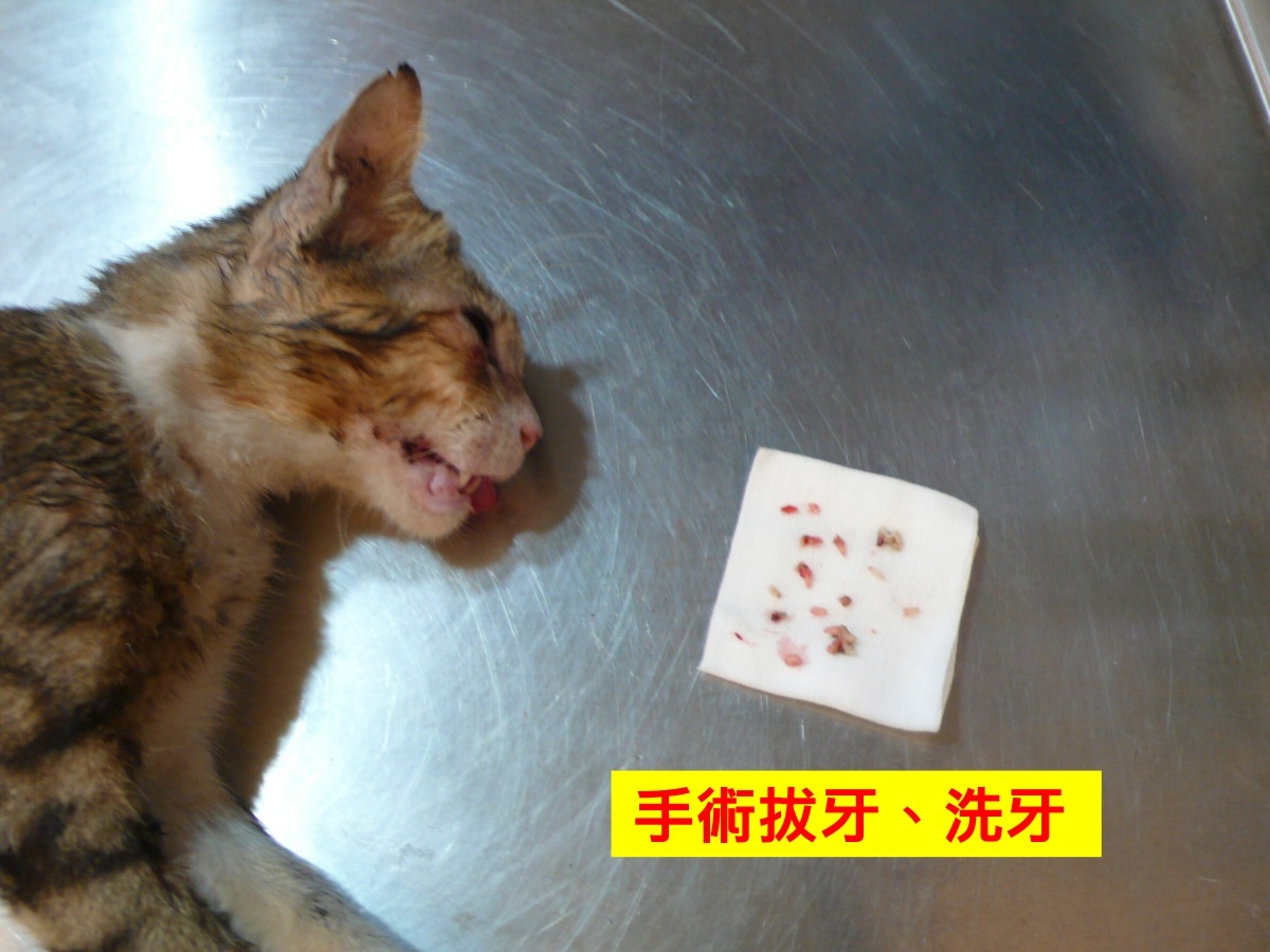 主題: 愛滋口炎貓併鼻氣管炎感染 申請者姓名: 張嘉盈 花色: 申請日期: 2013-10-14 10:04:37 申請者部落格: 申請者臉書網址: 所在縣市/合作醫院: 台北市/極光動物醫院 治療費用: 20900元 需求人數: 22人 已結案 (2014-01-10 17:58:00) 報名人員: Nounours(已付款)、Moon(已付款)、Ariel Yu-Ting Tu、Jane Chen(已付款)、Larry Shen(已付款)、Inana Lee(已付款)、Ronda(已付款)、Emily Chou(已付款)、Alison Lee(已付款)、蔡摳摳(已付款)、peggy(已付款)、潘逸群(已付款)、Josephine(已付款)、Choco Chen(已付款)、Becca Huang(已付款)、阿惹(已付款)、蔡秀芳、Susanna Chueh、阿妹、Forest(已付款)、coco530728 x2(已付款)、Hugo Chang(已付款)、蕭泰咪(已付款)、蕭泰咪、鍾佳臻(已付款)、古錐麻(已付款)、 候補人員: 動物病情說明: 已TNR浪貓(健健),志工發現牠嚴重流口水,且吃罐頭後大聲尖叫作嘔,狀似非常疼痛,9/15帶至長沁醫院拔牙+右眼瞼割除(已付清款醫療費用4200元,照片3),醫師說舌頭和牙齦都爛爛的,帶回來後發現他呼吸聲很大,常打噴嚏流眼淚,還是一直流口水,下巴淋巴結非常腫硬,本來術後2天會吃罐頭,9/22完全不進食,據住戶說他今年瘦了一圈且這樣症狀好幾個月了,故向協會請求協助。