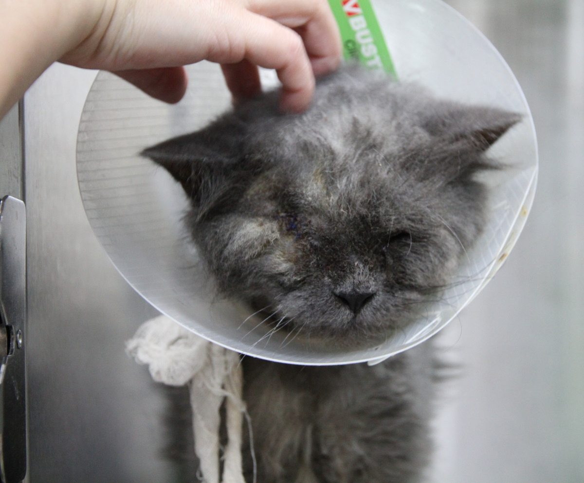 全身毛掉很多 只剩下不多的毛 身體皮膚也多處潰爛 雙眼差不多潰爛了